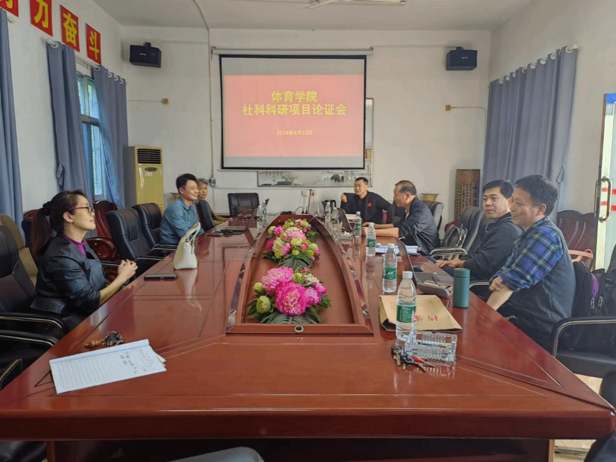 4月13日下午体育学院在二楼会议室召开2024年社科科研项目论证会。副院长曾志刚,院内专家朱梅菊、张崇林、余智及项目申报教师参加论证会。