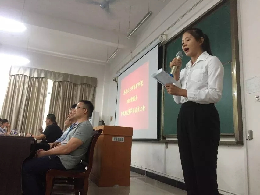 井冈山大学体育学院2018届新生开学暨军训动员大会于9月8号下午开始,会议的开始是由张书记至辞,欢迎新生的到来以及介绍我院领导,包括熊百华院长,夏至副院长,张蔼云书记,杜和平老师,胡达道老师.