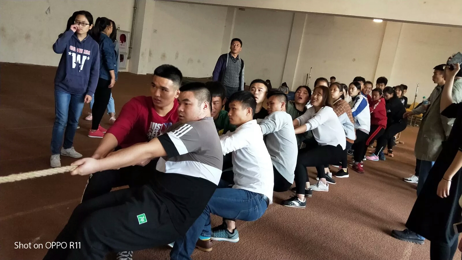 体院拔河比赛圆满结束 2017年11月11 团学工作 拔河比赛,在今天上午体育馆底楼室内田径场举办了拔河比赛。体院共出动了二十名战士。 看体院健儿那坚定的眼神。 力拔山兮气盖世,体院健儿展风采,捏捏肩,晃晃腿,笑一笑,输?不可能,输了丢体院的人。矜持?男生女生撸起袖子放开手脚就是干! 这是前六名 其实每个人都一个有体育人不服输的精神,相信自己、相信集体,虽然一个人的能力很小但只要能一个个集结在一起将无所畏惧,同甘共苦奋勇向前直达顶峰。 分享到:QQ好友微信QQ空间新浪微博人人网复制网址打印