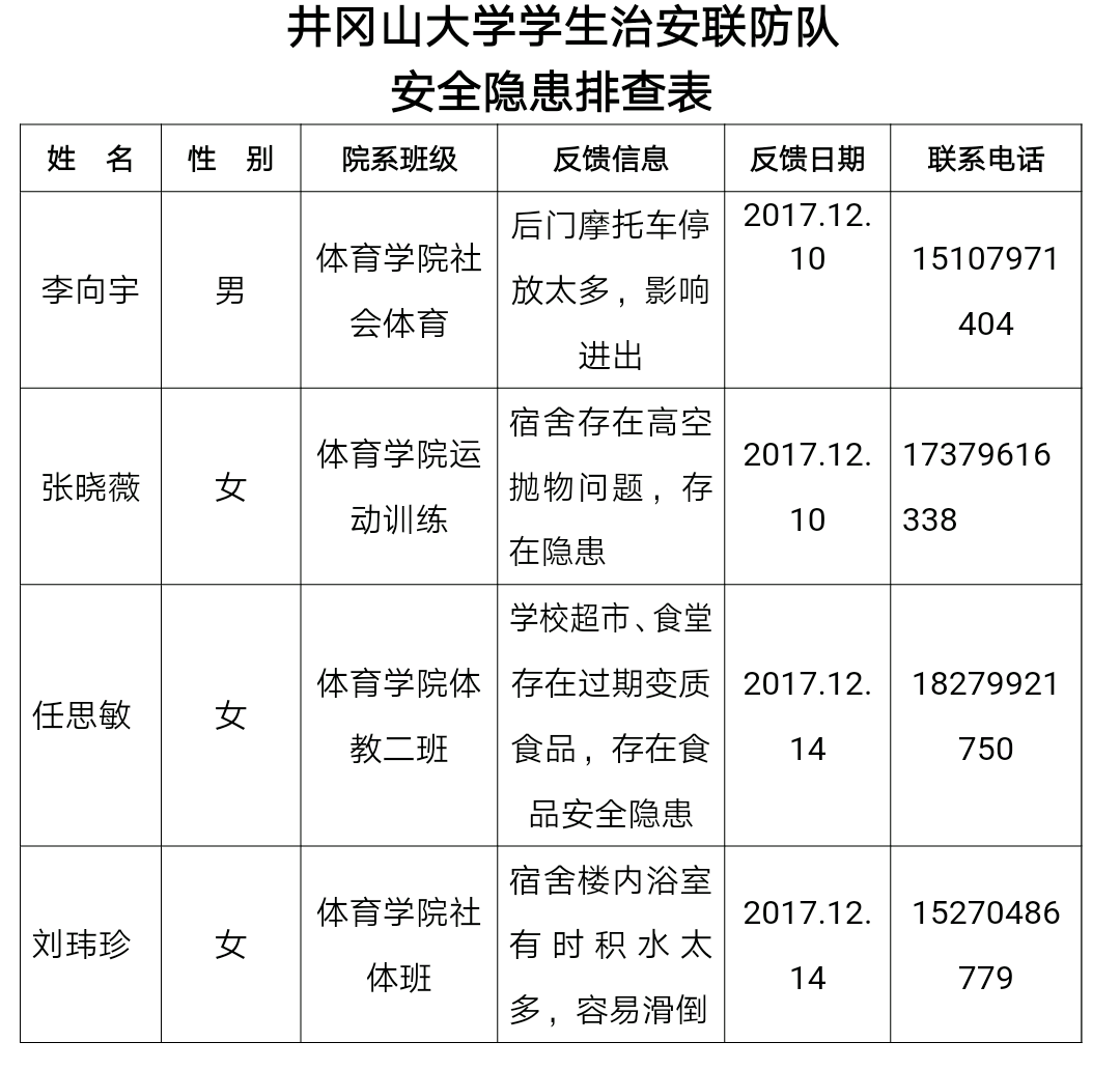 体育学院安全信息报送表