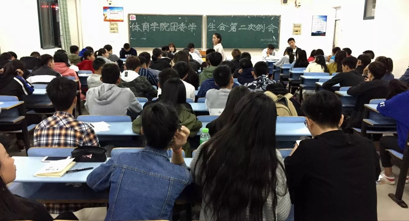 井冈山大体育学院团委学生会第二次例会于2017年10月15日,18时30分在10栋A-014教室召开,例会由学生会执行主席肖涛主持,学生会各副主席、副书记、各部门部长、全体部门助理及爱心社、环境使者社全体成员参加。