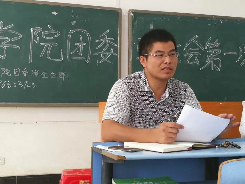 体育学院团委书记伍人乐老师发言,伍老师直接点明学生会是为学院服务,加入学生会是为了开心工作、享受工作,从工作中得到快乐,但也要学习工作两不误。伍老师着重强调做事要踏实,遇到困难要迎难而上。既要仰望星空,又要脚踏实地。