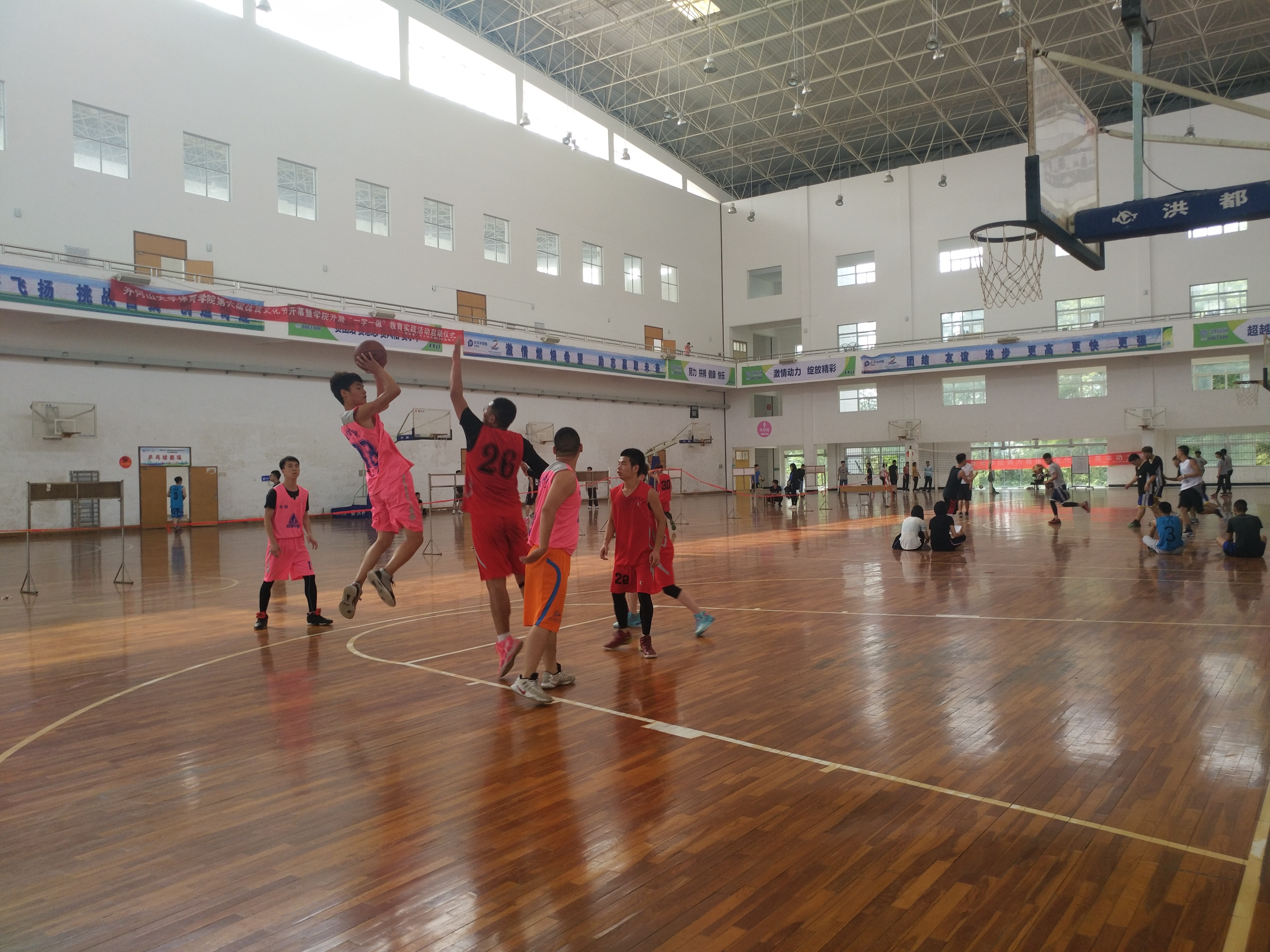 比赛开始前,体训馆传出了一阵阵篮球击地的声音,格外清脆,各参赛队员都在为比赛做好最后的热身准备。随后,每个场地都在进行激烈的争球大战。虽然比赛时间只有短短的二十分钟,但是每个队伍都打出了自己的水平、自己的配合、自己的风格,一个个投篮在空中划出了美丽的弧线,