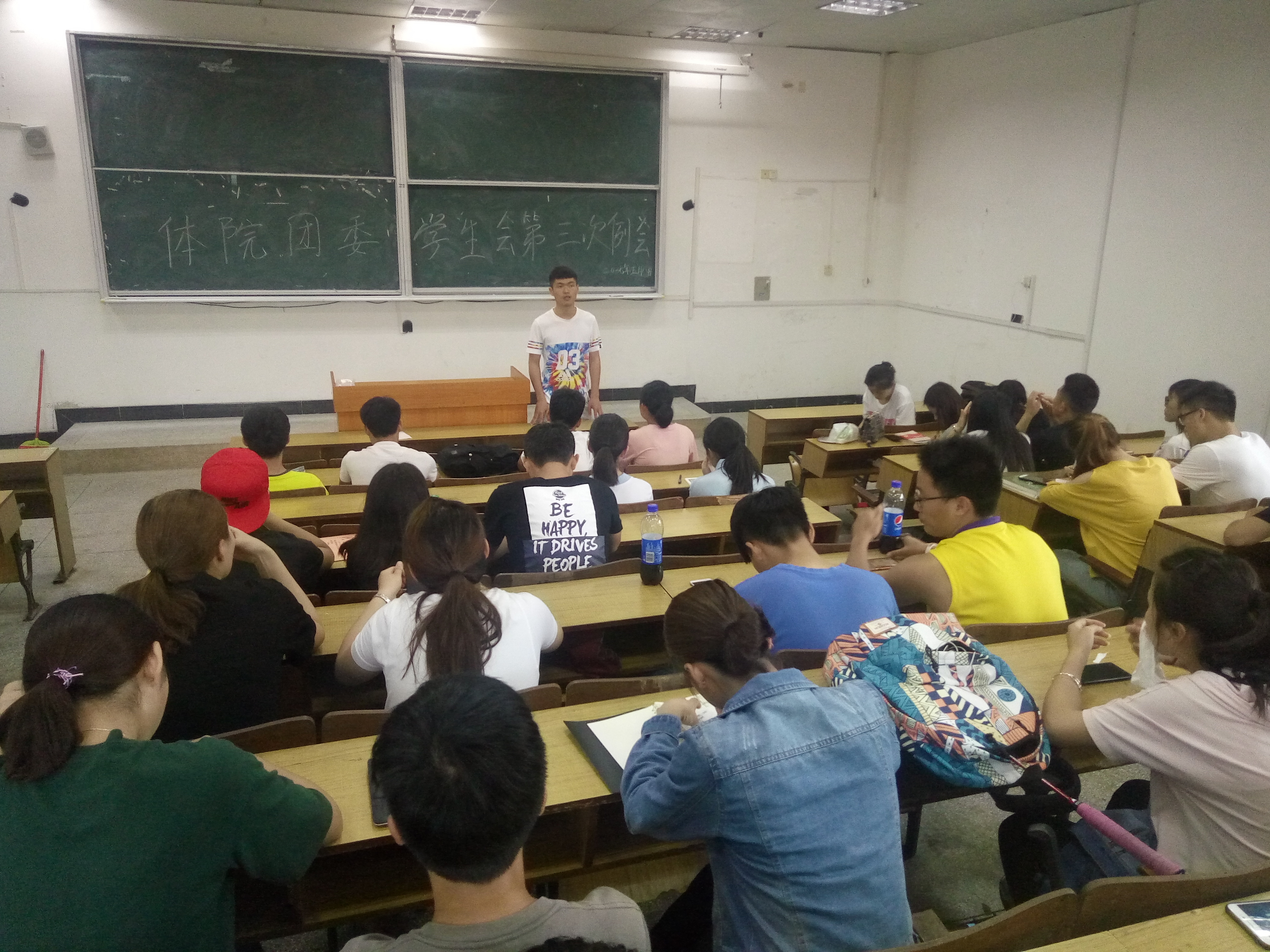 2017年5月8日中午12:30,体育学院团委学生会在五栋307召开了本学期第三次例会,本次例会主题是对体育文化艺术节工作进行布置和团委学生会五四考核工作进行总结。