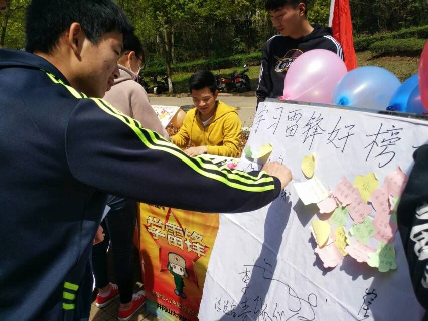 今年的3月5日是毛泽东同志题词“向雷锋同志学习” 纪念日。雷锋,这个熟悉的名字在每一个人心里闪烁了,他是我们心中光辉的楷模。为弘扬和培育民族精神,2017年3月27日我院社会实践部同其他学院社会实践部在食堂门口进行了学雷锋摆点活动。