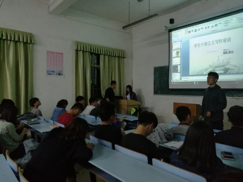 2017年4月14日19:00,我院学生骨干班之公文写作培训在7-101教室顺利开展,我院团委学生会主席丁益锴也参加了本次课程。本次电脑办公软件培训由我院团委学生会部长秦建民和赖嘉欣主讲,主要内容包括公文写作的普适方法、井大学生会公文排版标准、学生工作常见公文、公文写作中的常见问题。