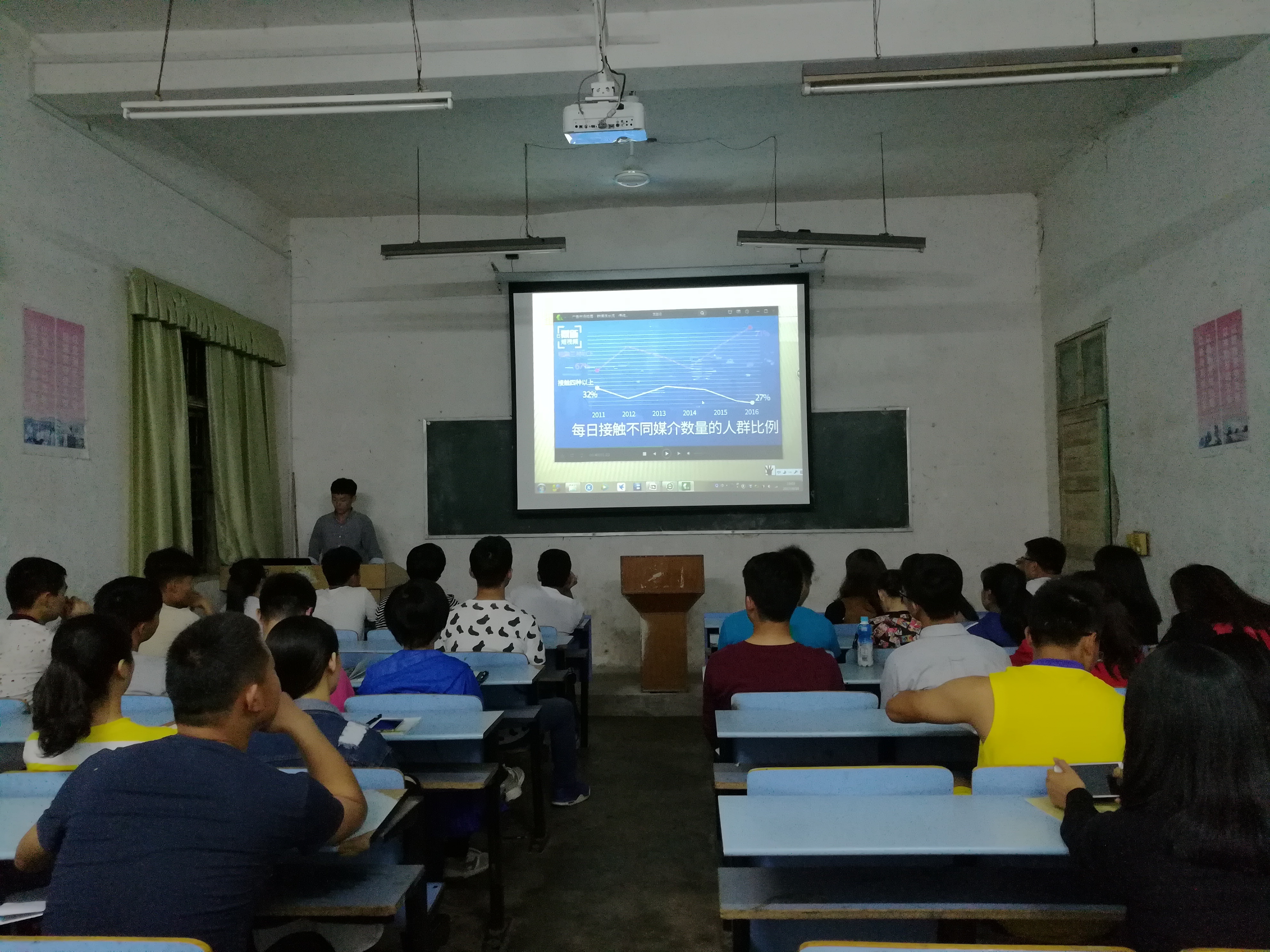 2017年4月16日晚上七点整,我院团委学生会新媒体部殷亮亮给团学干部培训班学员们上了一堂生动有趣的新媒体课。除了45名团学干部培训班学员来上课外,还有一些学员的室友也来了蹭课。