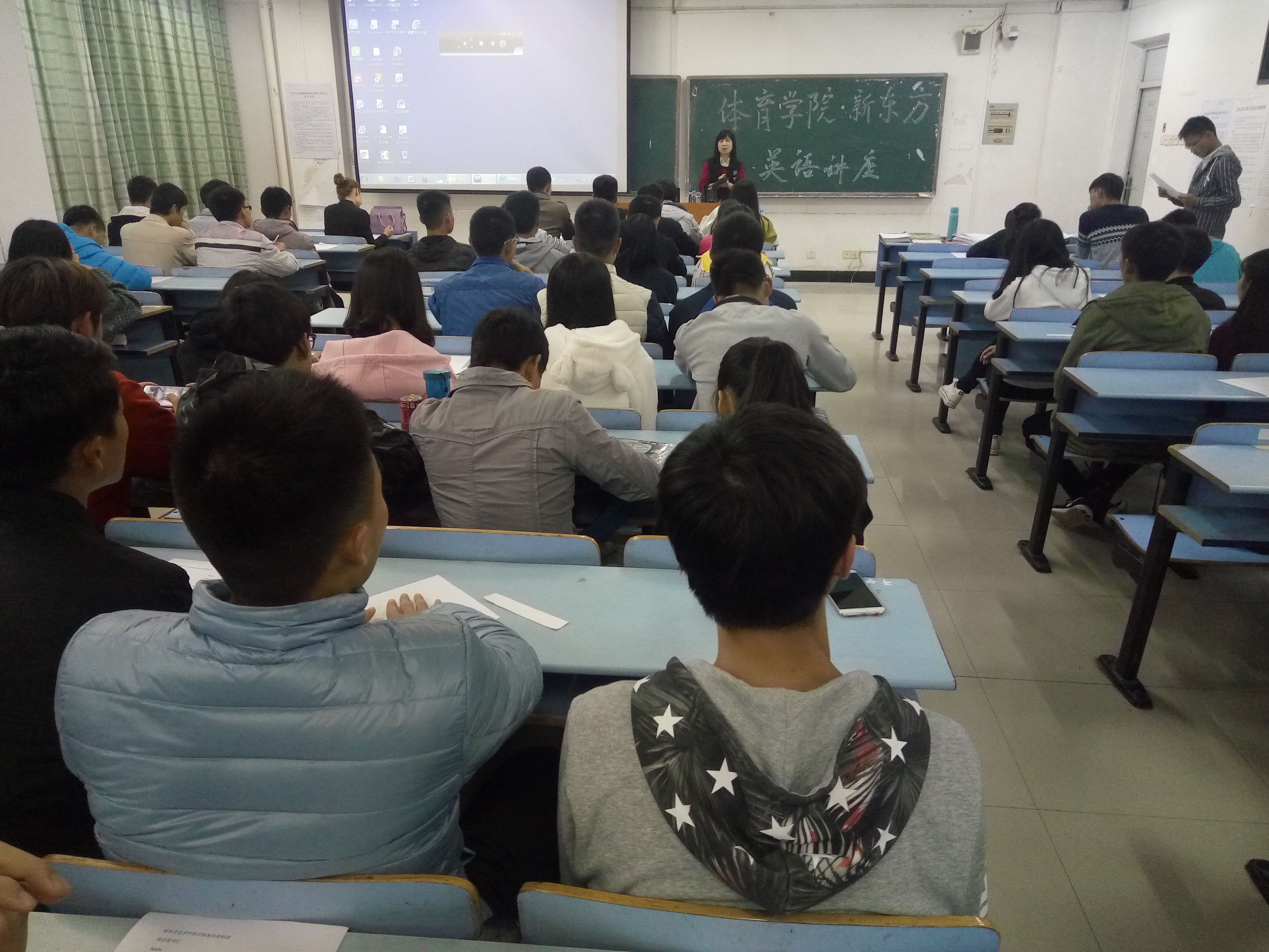 2016年11月11日,我院很荣幸的请来新东方英语吉安分校的校长何琳老师为同学们带来了一场以“四六级备考与英语口语学习规划”为主题的讲座。晚18时30分,讲座在十栋A014正式教室开讲。同学们对英语的热情非常高涨,在讲座开始半小时前,大教室就已经坐满了。