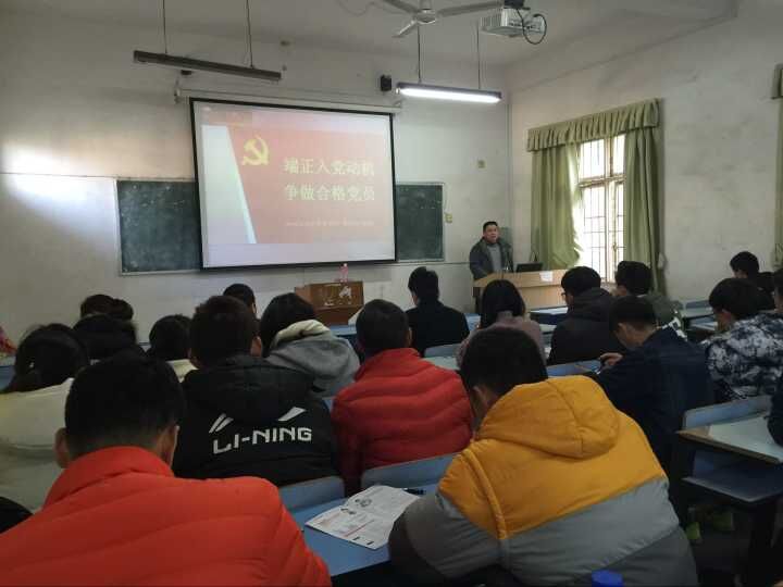 2016年12月17日早上九时许,我院党委副书记傅秋仁在体育学院201教室对14、15级品学兼优、综合表现好的入党积极分子举行以“如何端正入党动机”为主题的讲座。早上8:50时分,参加培训的同学便已充满热情和期待的到齐,等在教室。本次活动由学生支部书记伍人乐老师主持,在他的组织下,同学们有序就坐,并以热烈的掌声表达了对傅书记的欢迎与尊重。