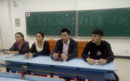我院2016团委学生会第一次例会于10月13日晚上8:30在十栋A区015室召开,到场人员有团委书记伍人乐老师、主席团成员、各部门部长和大一新生助理,本次例会还有幸邀请到前任主席团成员林小雅。