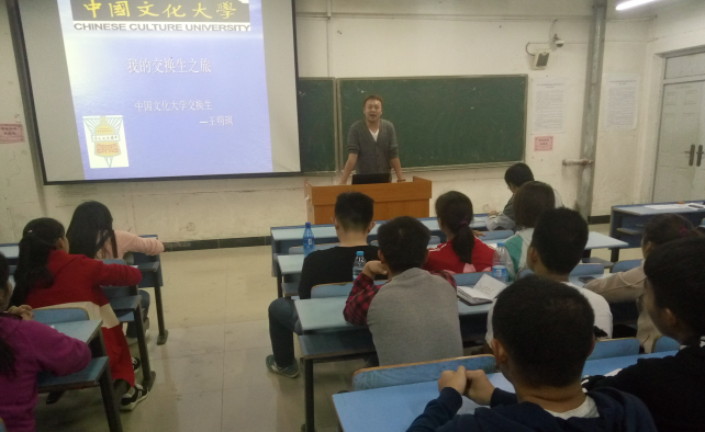 读万卷书,行万里路。为祝贺我院李鹏、王明琪、胡林娜、张钰四位同学圆满完成赴台学习任务顺利返校,2016年3月8日晚七点,我院于十栋教学楼A区015举办了赴台学生学习成果分享会。学生会全体成员和2015级部分学生参加了此次分享会,学院团委书记伍人乐应邀出席。