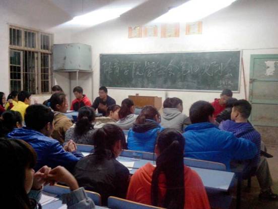 2013年11月19日下午4:30,我院学生会在体育学院102室召开了本学期的第四次团委学生会会议。团委书记、学生科科长史桂忠、团委副书记伍人乐出席本次会议并讲话。全体学生会成员共计70余人参加。会议伍人乐主持。
