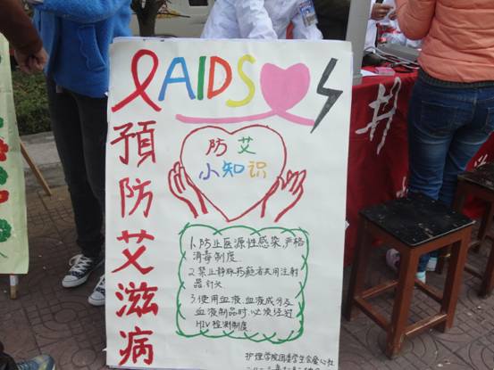 2013年12月1日是第26个“世界艾滋病日”,为宣传防御艾滋病知识,帮助在校大学生正确认识和了解艾滋病,12月1日上午,我校学生会社会实践部(爱心社)在新食堂门口举行了主题为“你我携手,以爱防艾”的防艾日活动,我院爱心社积极参与其中。