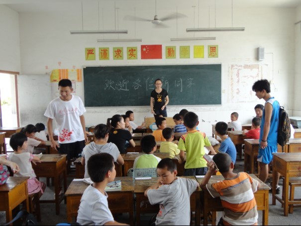 2012年7月4日星期三,今天的天气依旧晴朗,清早队员们早早的就起来准备今天的课程了,吃完早饭我们便准时前往井冈山学校教学楼的大厅的里,当我们到达时发现学生们早就提前到了,而且还在大厅里复习起了昨天学习的内容,女孩子还跳起了健美操。相比于昨天今天又来了些新学生,在做过简单的认识新学生后便开始了今天的课程。