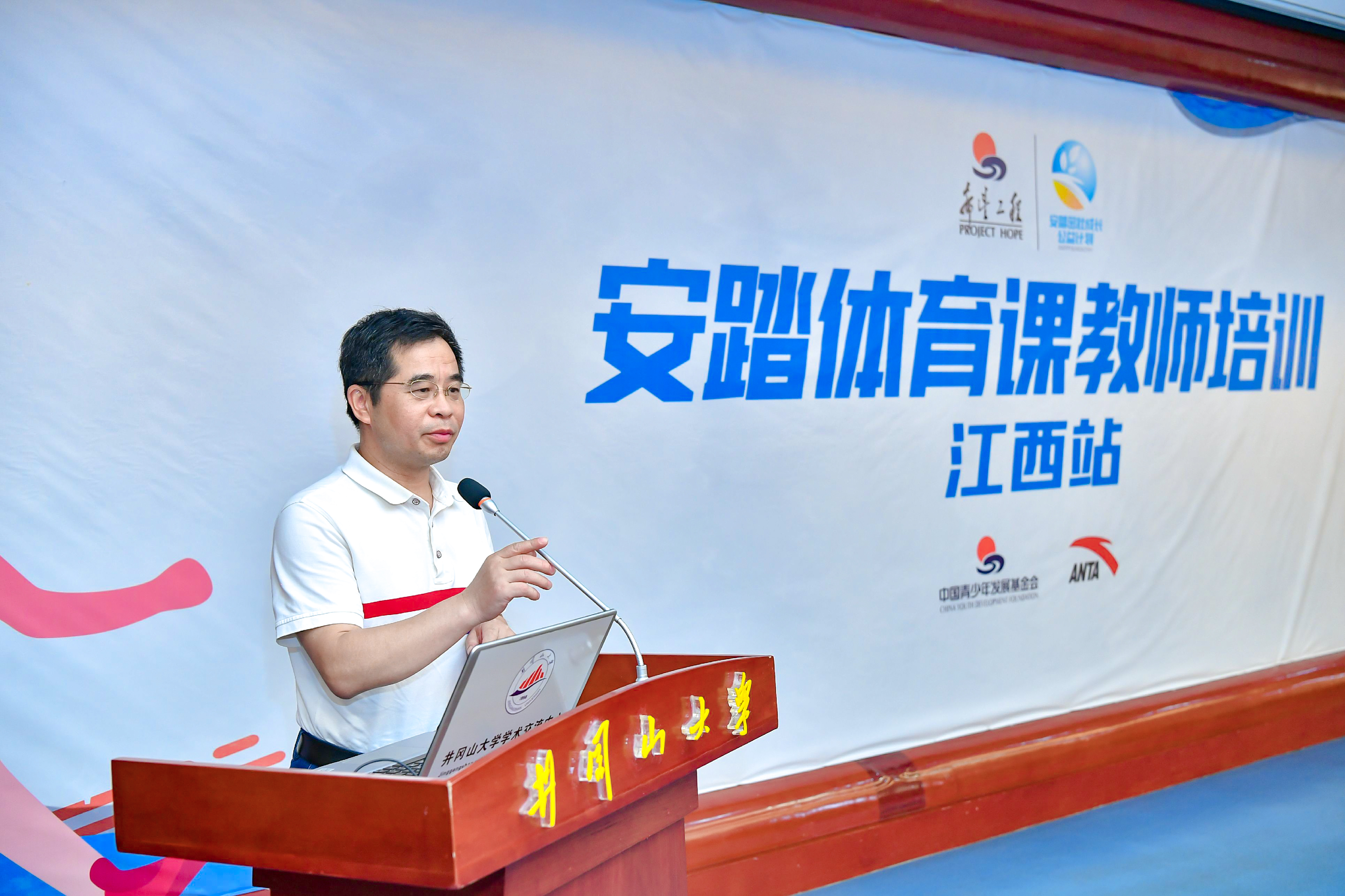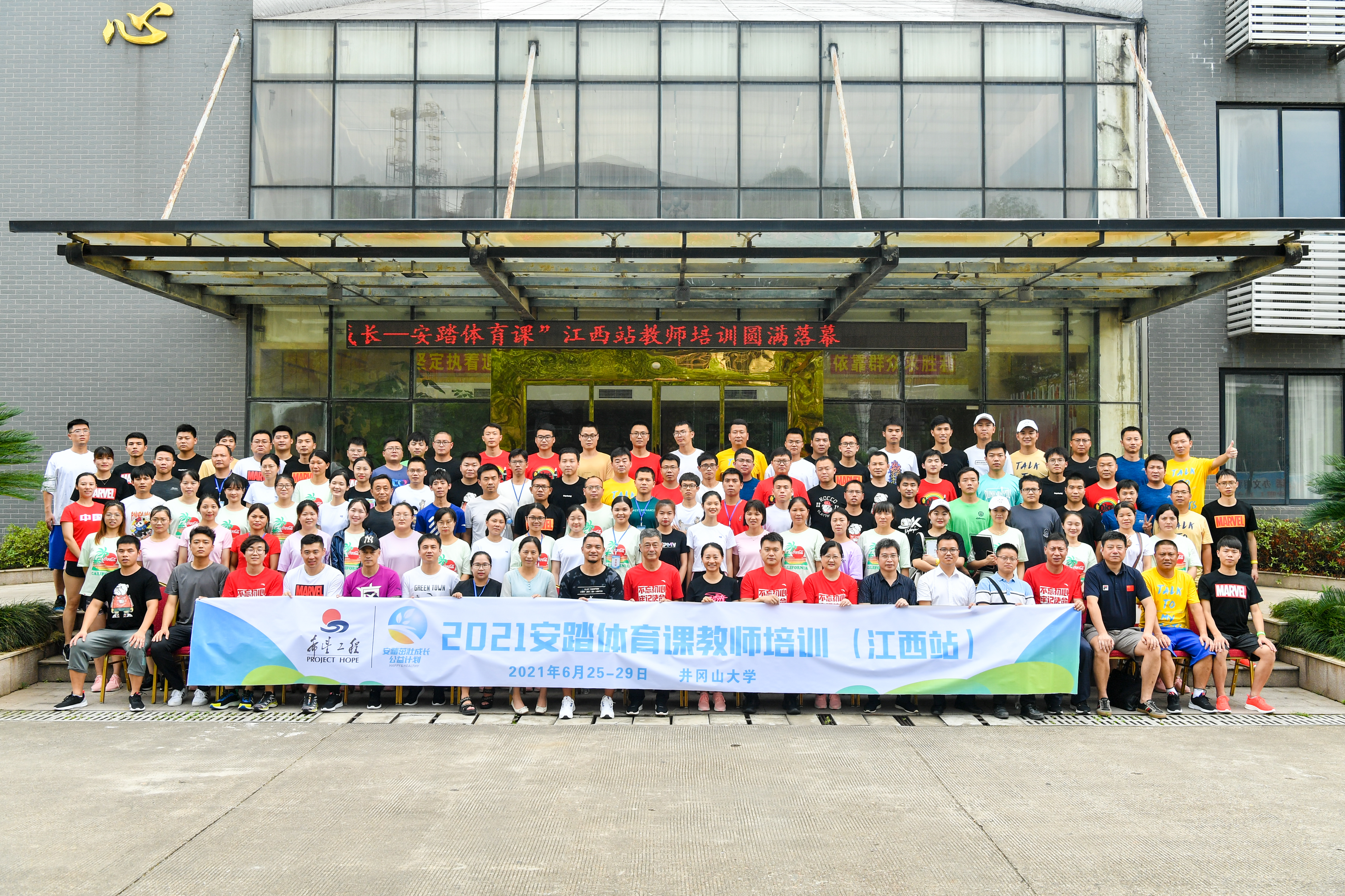 在庆祝中国共产党建党100周年之际。6月25日-29日,“希望工程·茁壮成长——安踏体育课”教师培训(江西站)在井冈山大学举行,本次活动由中国青少年发展基金会、安踏集团主办,江西省青少年发展基金会、井冈山大学承办。井冈山大学党委常委、副校长肖宜安,中国青少年发展基金会科技体育事业部部长助理张中伟,安踏集团企业社会责任部经理官紫依,江西省青少年发展基金会综合部副主任刘新,体育学院院长熊百华,以及吉水、兴国、石城三个县的团县委、教体局有关负责同志出席了开幕式。