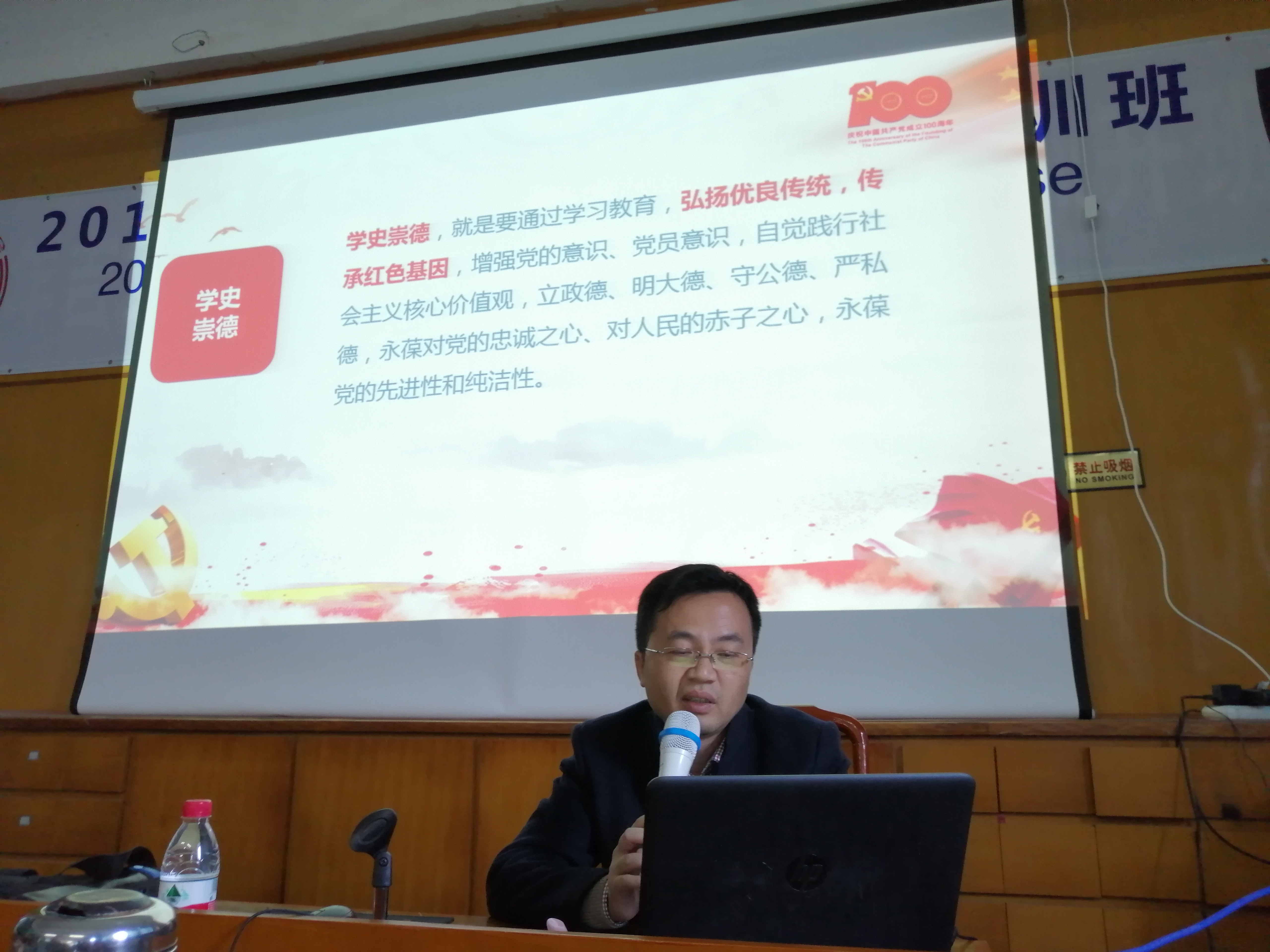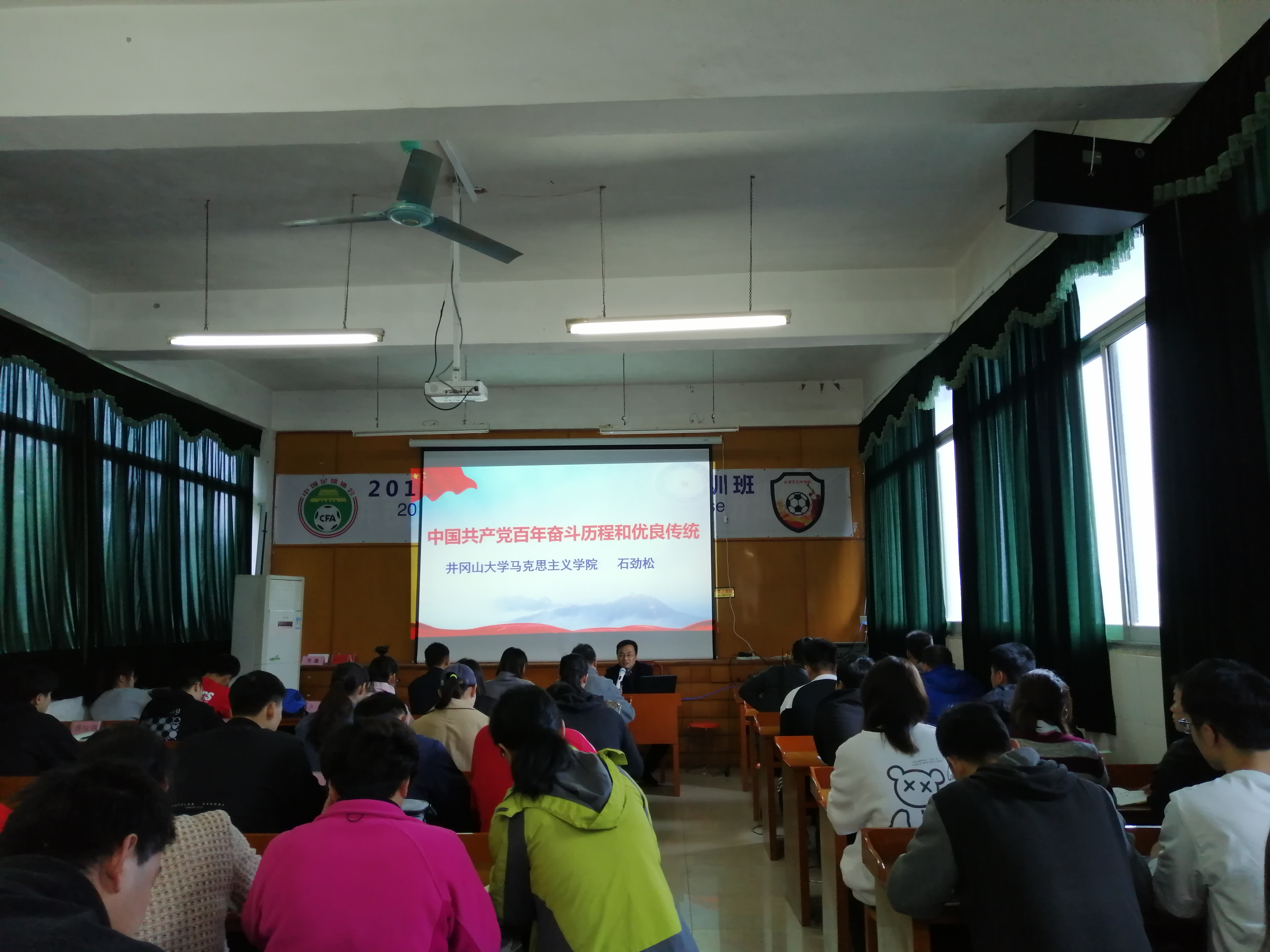 【学党史】党史学习教育学校宣讲团成员石劲松到体育学院开展宣讲 2021年04月17 学院新闻 4月15日,党史学习教育学校宣讲团成员石劲松到我院开展宣讲,学院师生党员80余人参加学习,熊百华主持宣讲会。 宣讲会上,石劲松以《中国共产党百年奋斗历程和优良传统》为主题,全面概括了习近平总书记关于党史的重要论述和开展党史学习教育的重大意义,主要从党的百年奋斗历程和历史贡献、党的百年历史经验、百年历史对现实的启迪、从百年历史看中国共产党的优良传统四个方面作了辅导报告。为与会人员上了一堂生动鲜活的党史学习教育辅导课。 分享到:QQ好友微信QQ空间新浪微博人人网复制网址打印