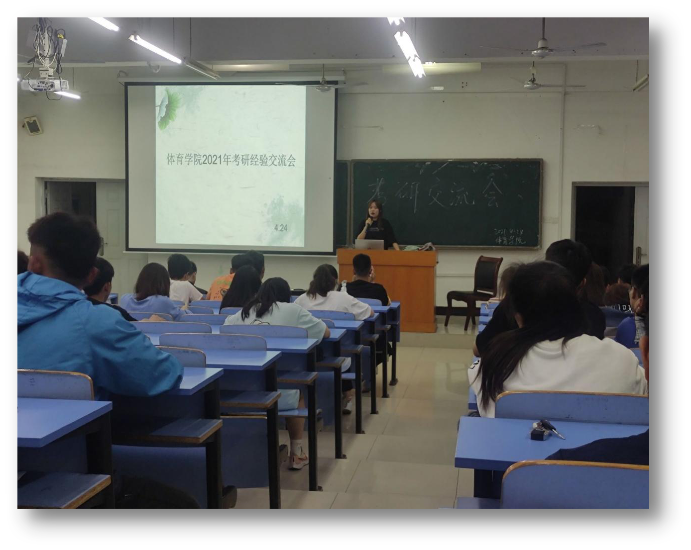 为进一步服务我院学生考研,帮助其明确考研目标,掌握考研初试和复试相关技巧,了解考研政策。2021年4月24日晚19:00,体育学院学习科创部在十栋A-110组织开展了体育学院2021年考研经验交流会。交流会由20社体沈达主持,参加交流会的人员有我院团委书记朱丽丽,我院140余名学生。