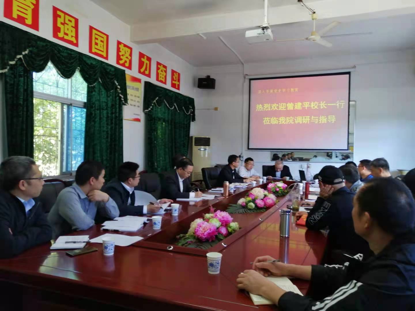 在全校开展学党史、办实事之际,4月29日,校长曾建平带领教务处、人事处等7个部门主要负责人来我院开展调研与指导工作。学院班子成员、教师代表共计15余人参加了调研座谈会。