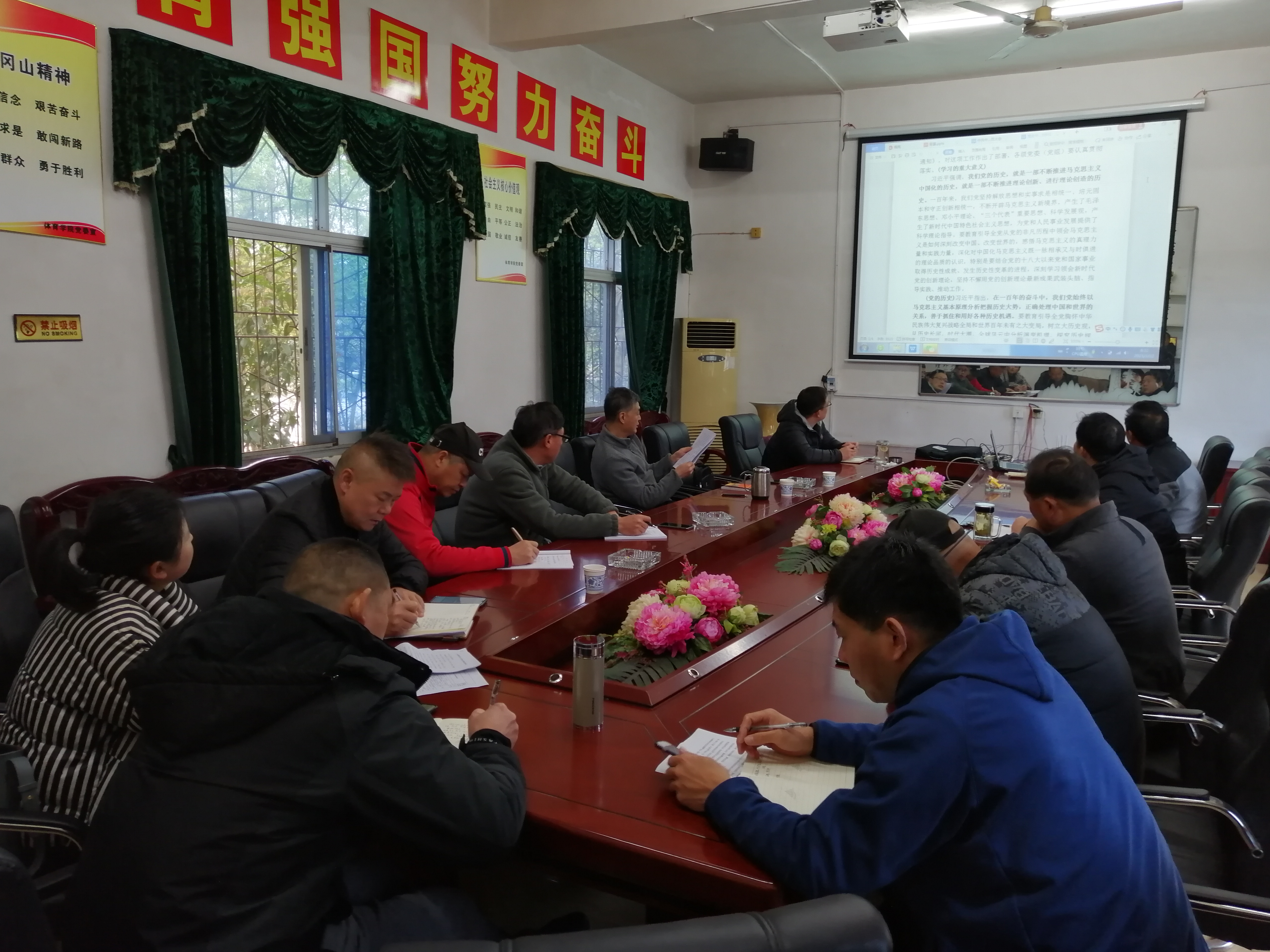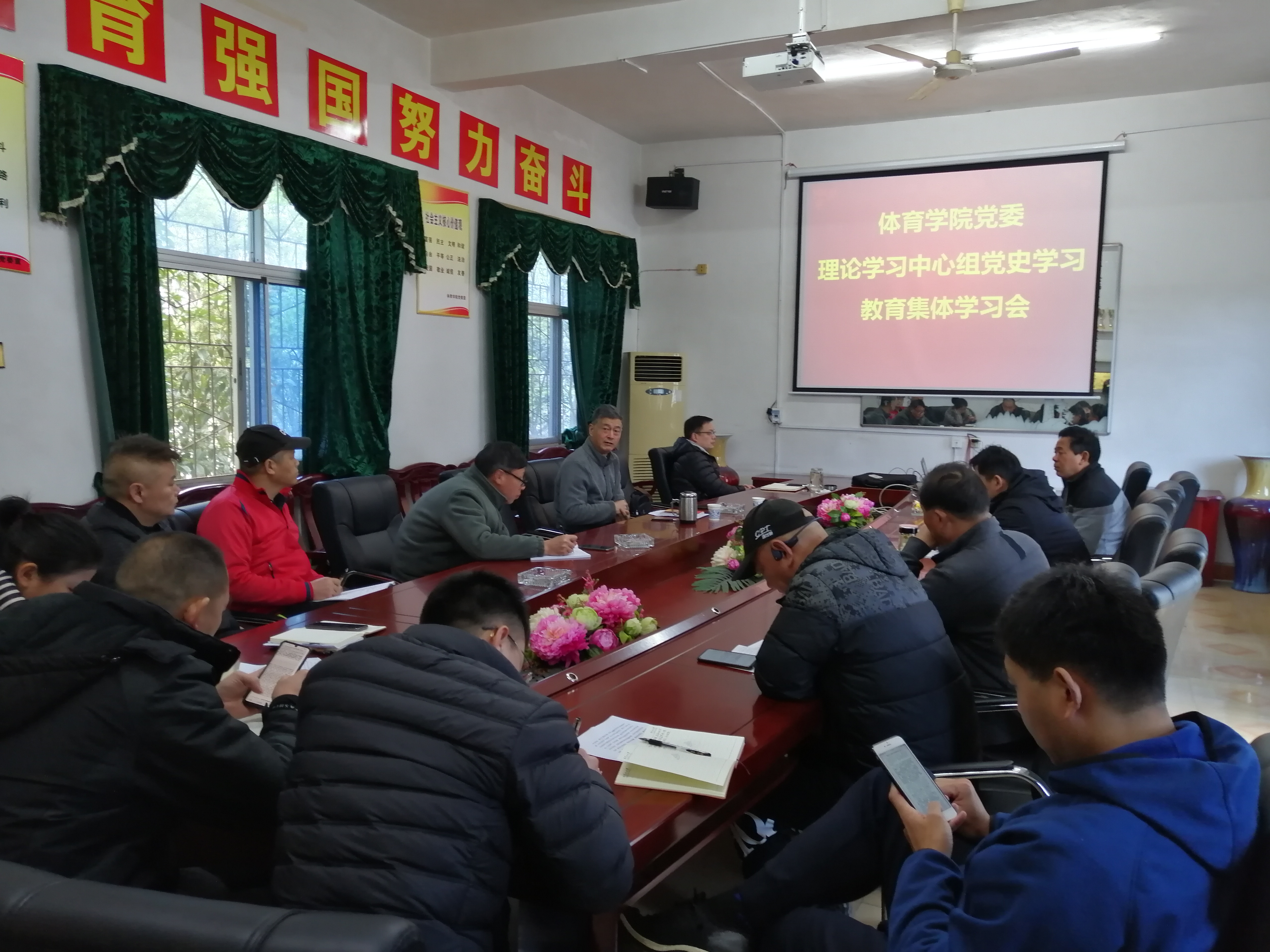 3月22日,体育学院党委理论学习中心组举行党史学习教育集体学习会,熊百华主持会议并带领中心组成员集中学习。