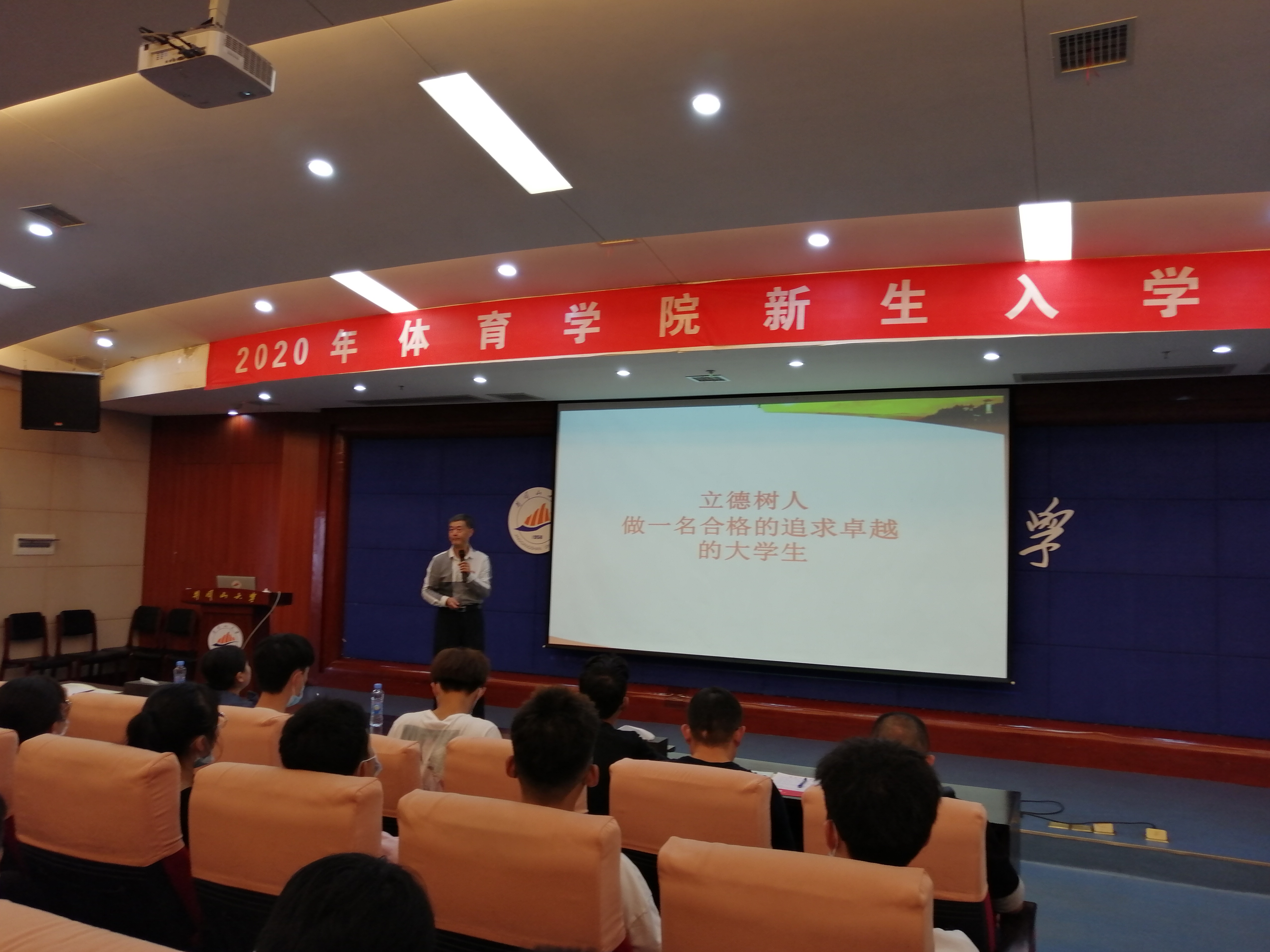 金秋送爽,丹桂飘香。9月30日下午体育学院2020年新生开学典礼暨新生入学教育在新学术交流中心报告厅举行。院长熊百华,副书记傅秋仁,副院长夏志,党委委员余友儒,辅导员、新生班主任及全体2020届新生共计230余人参加了会议。