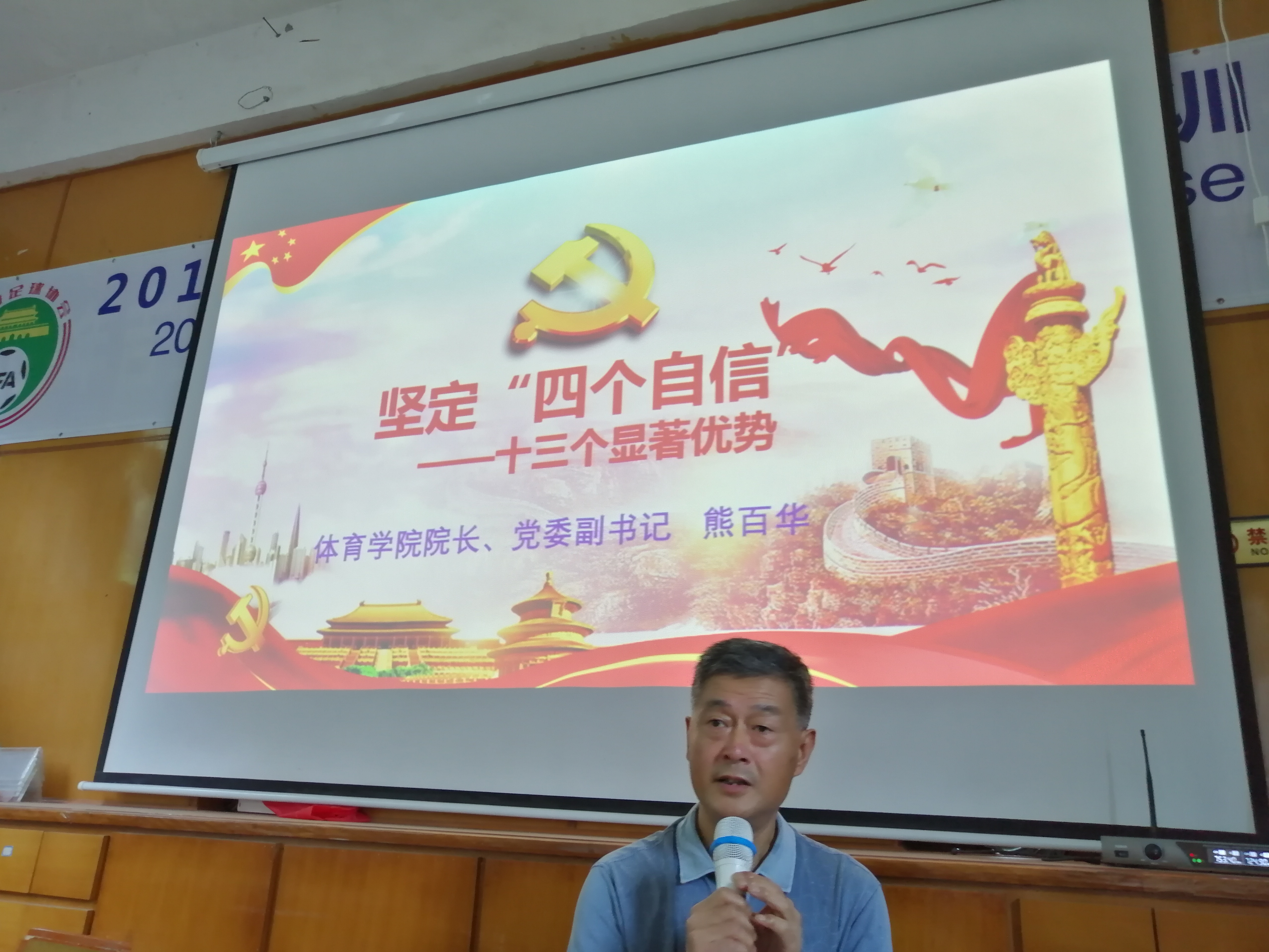 根据江西省委组织部和学校“党课开讲啦”活动部署要求,7月2日下午,体育学院“党课开讲啦”活动启动仪式顺利举行。启动仪式后体育学院院长、副书记熊百华带头给学院全体师生党员上了党课。学院党委委员、副院长夏志主持。学院教工、学生党员参加了启动仪式并聆听了党课。