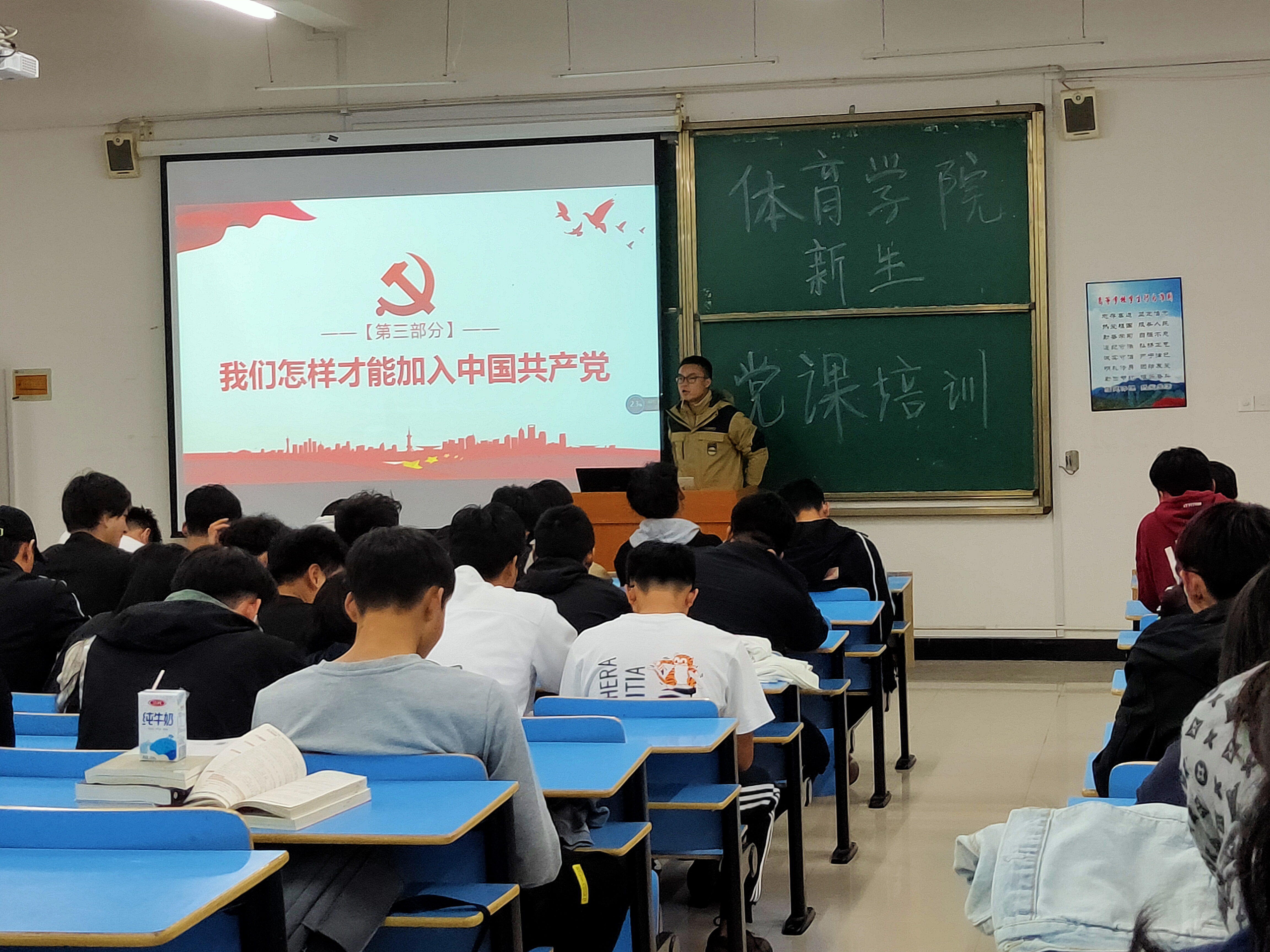 为引导大一新生端正入党动机,帮助他们深入了解入党要求和程序,引导他们积极向党组织靠拢,10月29日晚7点,体育学院学生第一党支部书记朱丽丽与学生第二党支部书记叶裕鹏分专题为学院2019级全体新生讲授了入党启蒙课。