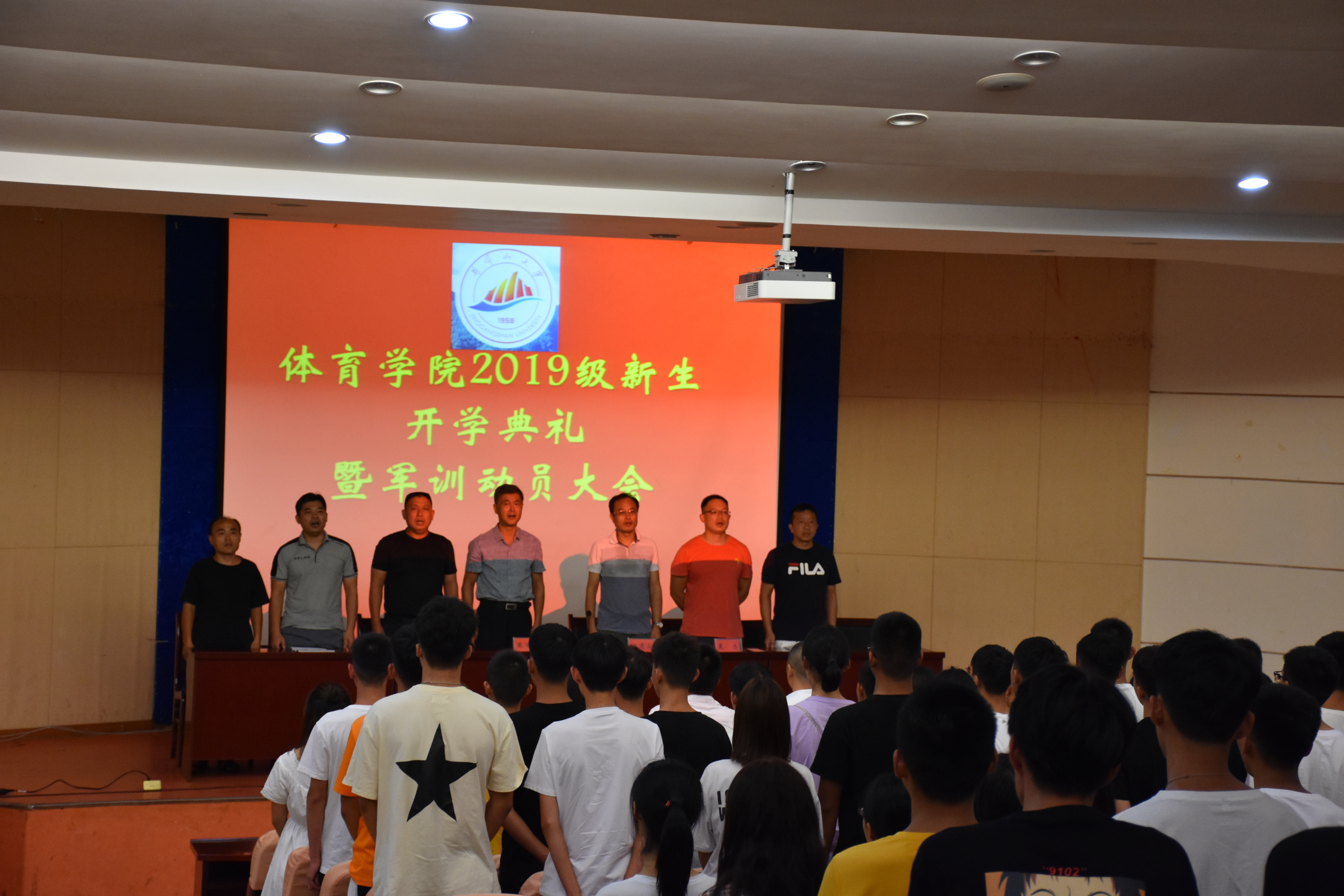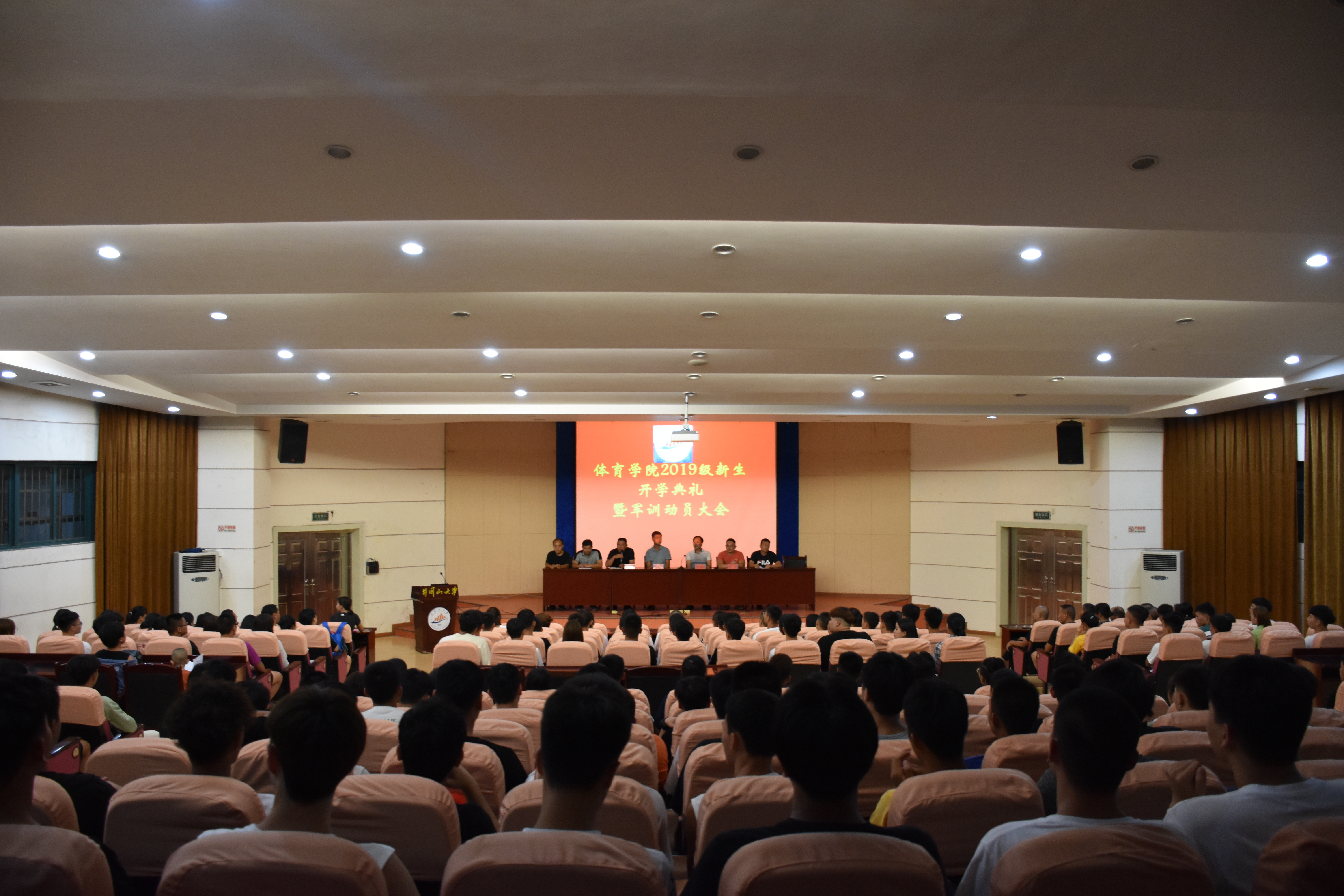 9月5日晚,体育学院2019级新生开学典礼及军训动员大会在10栋报告厅举行。体育学院院长熊百华,党委书记张霭云,副书记傅秋仁,副院长夏志出席了会议。辅导员、班主任、2019新生及部分家长参加了会议。傅秋仁主持会议。