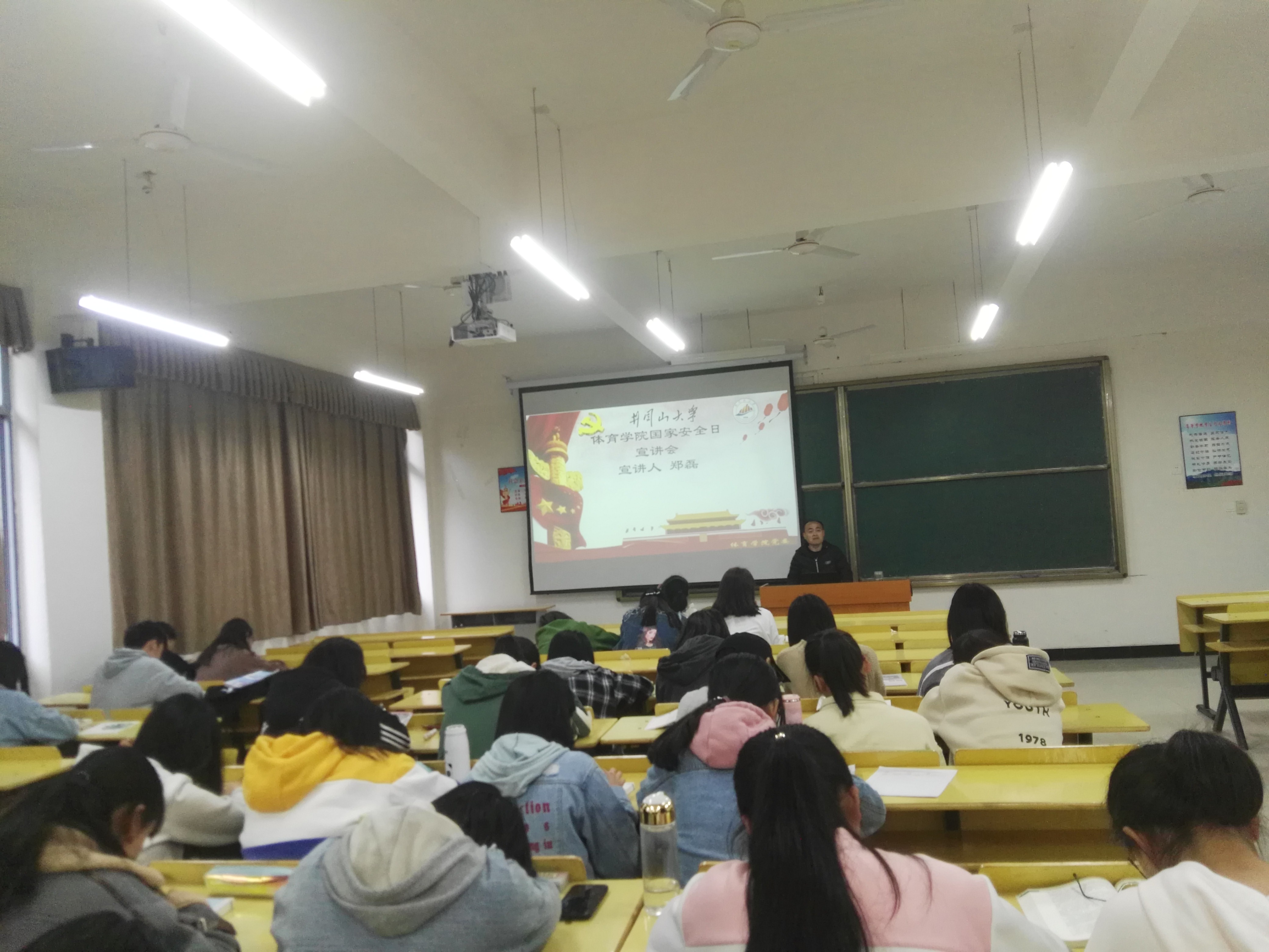 体育学院开展国家安全宣传教育日活动纪实 2019年04月18 学院新闻 4月15日是国家安全宣传教育日,为深入学习贯彻习近平新时代中国特色社会主义思想,坚持总体国家安全观,着力防范化解重大风险,喜迎中华人民共和国成立70周年,根据学校综治办通知要求,体育学院召开了主题为:“千万学生同上一堂国家安全教育课”的国家安全宣传教育活动动员会议。会议要求各科室、各班级要以观看视频、讲座、主题班会、举办安全知识答题等形式开展国家安全教育宣传活动。一周以来,各科室、各班积极行动,通过开展教育活动,树立了总体国家安全观,强化了全体师生的安全意识,增强了国家安全责任感和使命感。 分享到:QQ好友微信QQ空间新浪微博人人网复制网址打印