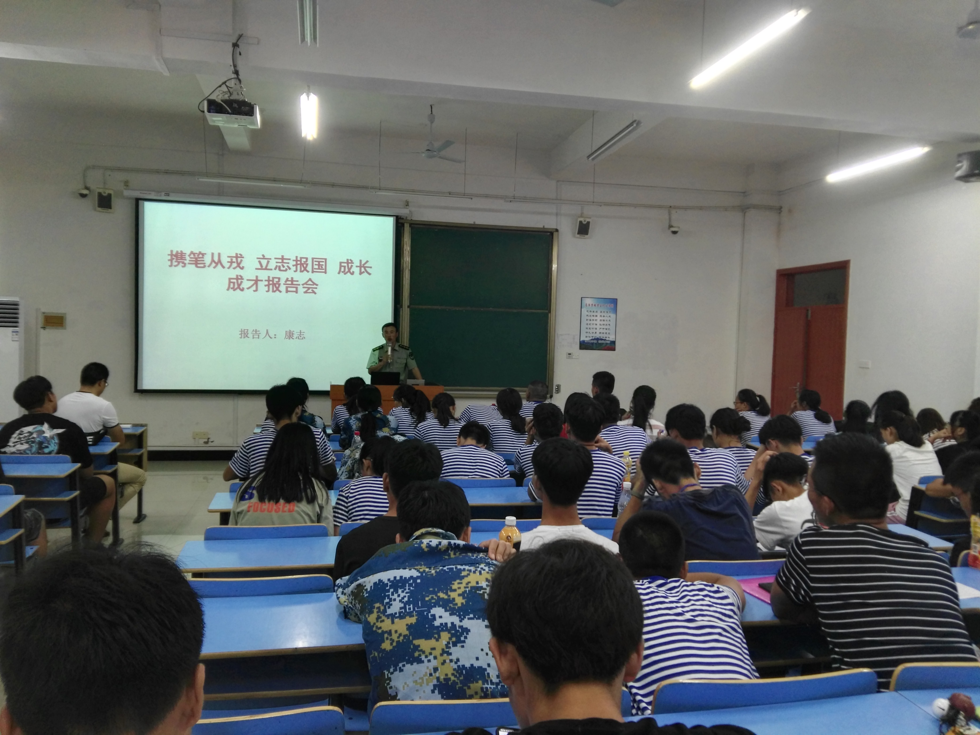 2018年9月13日,体育学院邀请了2010级优秀校友康志回母校给大一新生作了“携笔从戎立志报国成长成才”报告会。大一新生、辅导员、班主任共计200余人参加了报告会。