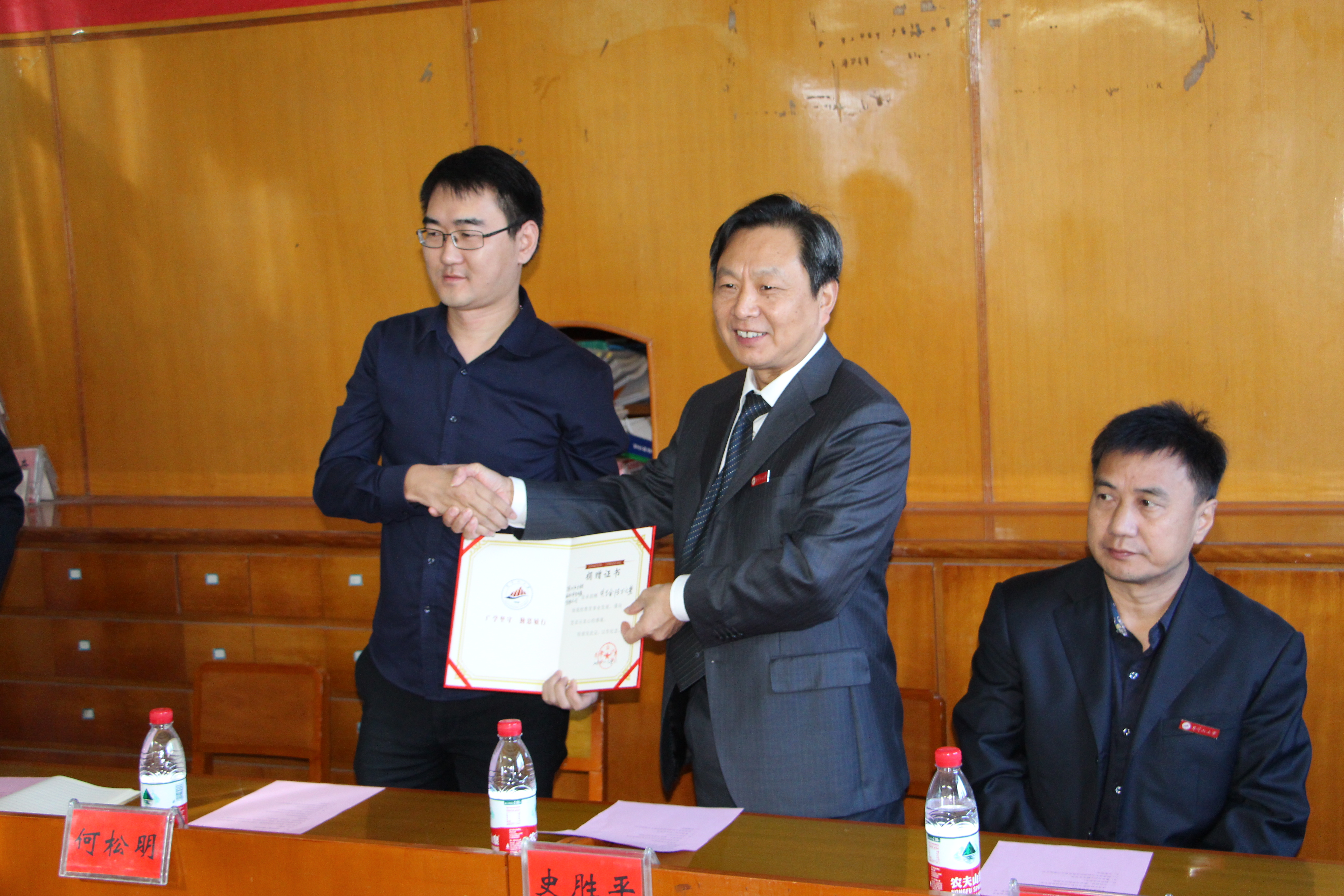 首先校党委常委、纪委书记史胜平出席捐赠暨颁奖仪会并向优秀校友刘小虎、何松明先生颁发捐资荣誉证书。校领导和嘉宾一起为20名品学兼优的学生颁奖颁发了2万元奖学金。