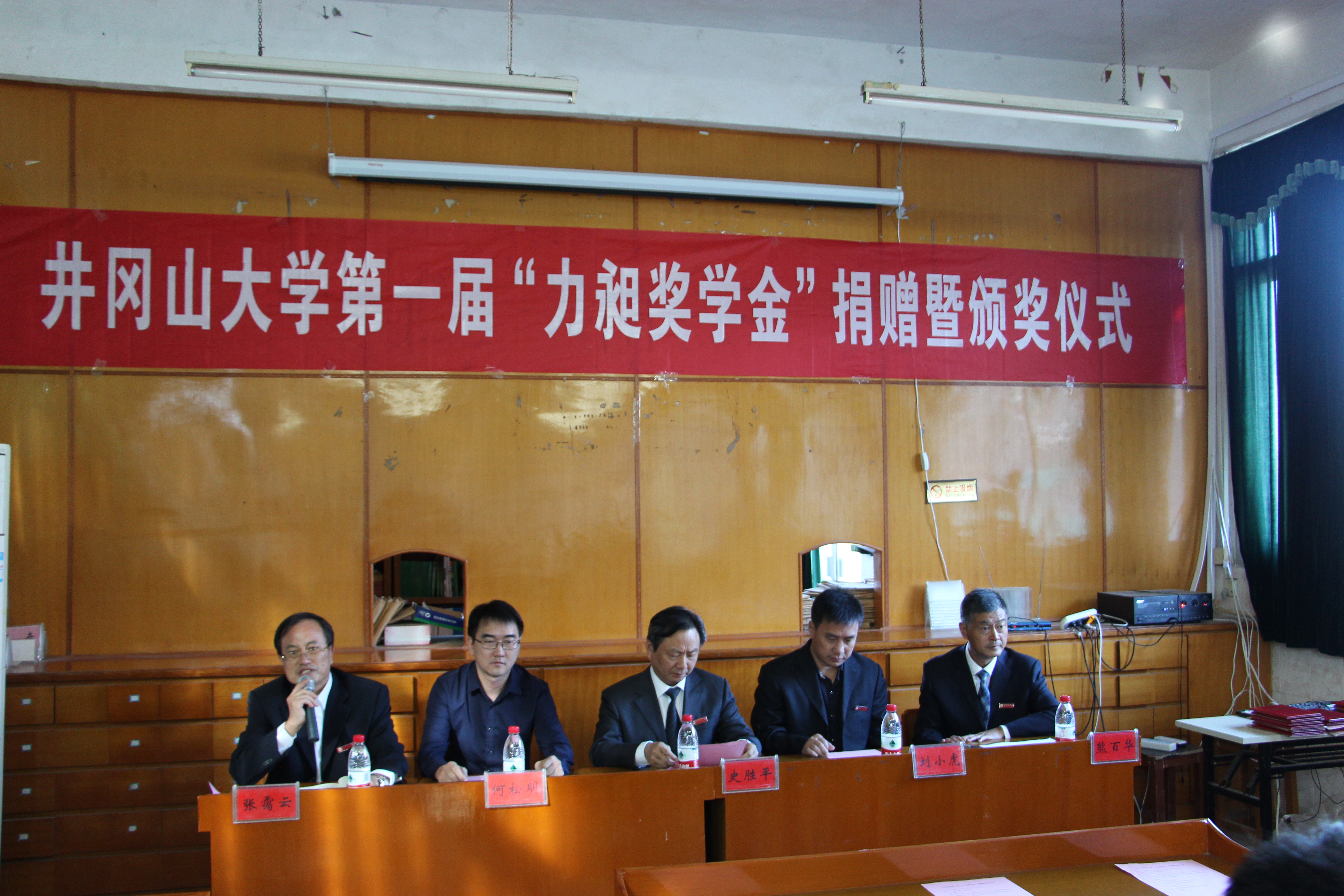 10月28日上午,体育学院举行井冈山大学第一届“力昶奖学金”捐赠暨颁奖仪式。出席颁奖会有校党委常委、纪委书记史胜平,嘉宾有力昶国际体育发展有限公司董事长刘小虎,总经理何松明和体育学院院长熊百华,以及全体获奖学生及学生干部共计50人参加,会议由学院党委书记张霭云主持。