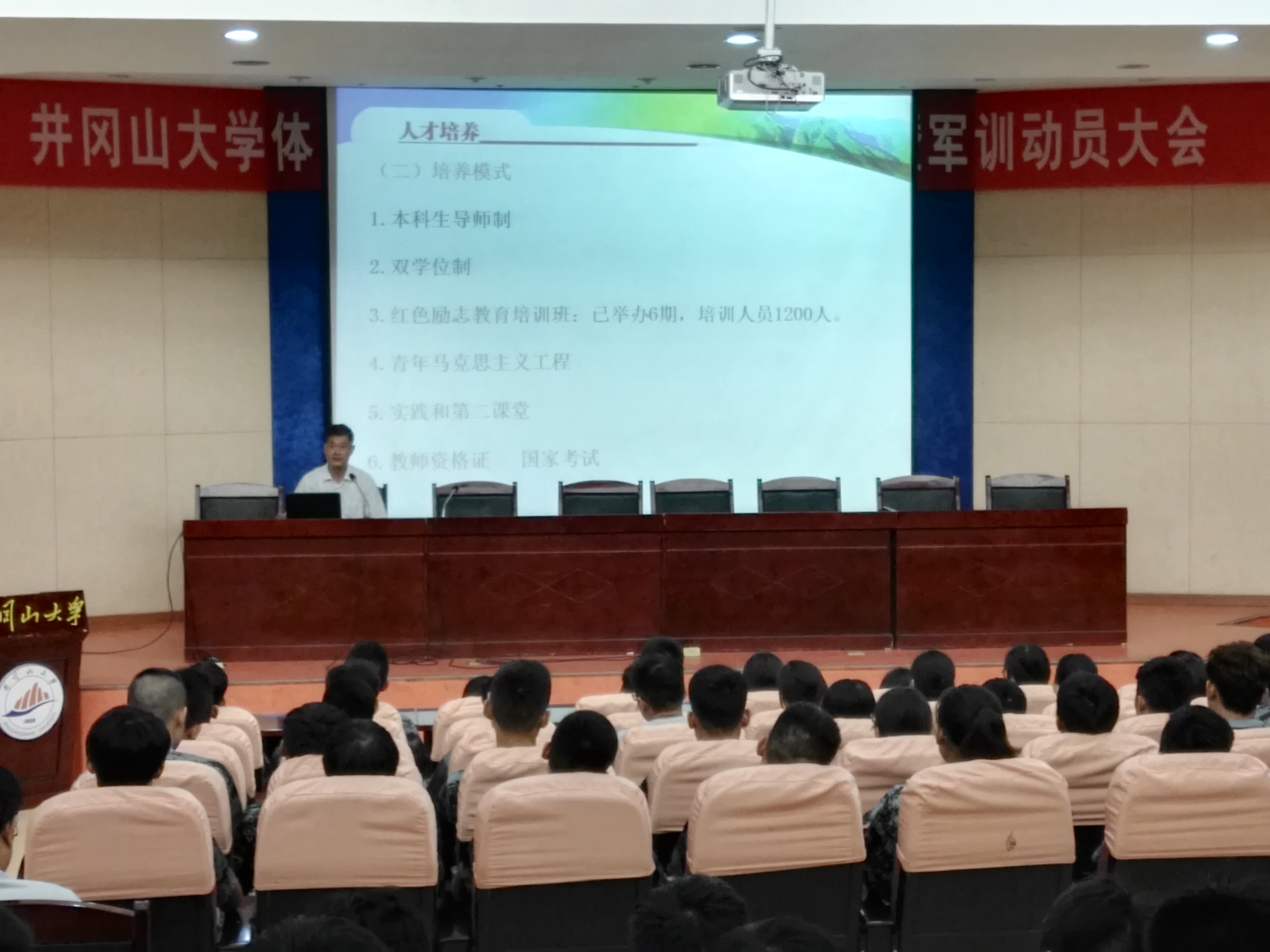 会上,熊百华介绍了井冈山大学的历史沿革,从师资力量、教育教学、人才培养、科学研究、文化传承、服务社会等6个方面介绍了体育学院的基本情况,并对军训提出了具体要求,本次体育学院举行特色军训,9月9日-24日进行,比其他学院提前两天,早晨6-7点也要出操。