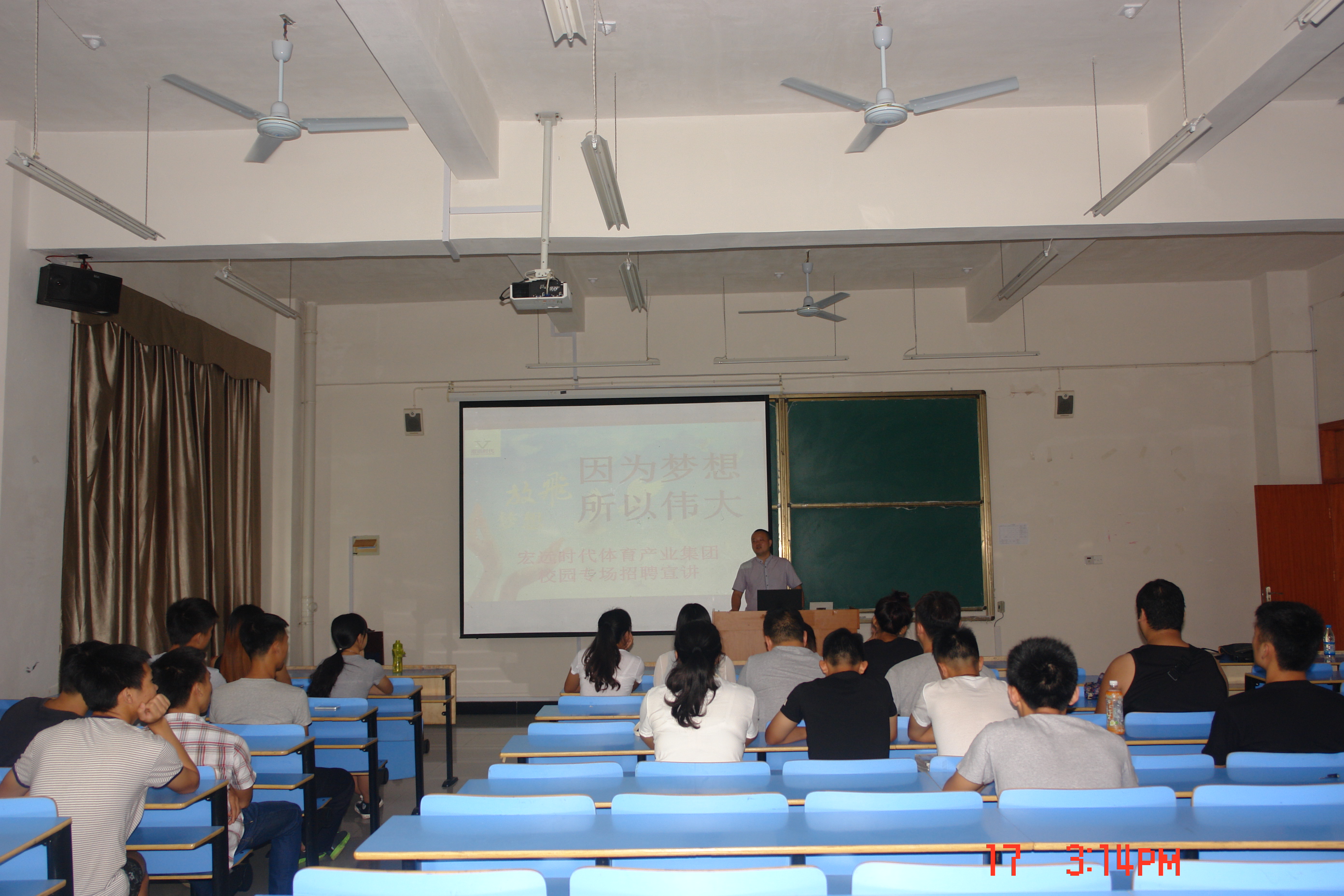 体育学院成功举办创业劢志教育成长报告会 2016年06月17 学院新闻 体肓学院邀请宏远时代体育产业集团人力资源总监薛良奇于6月17日为体育学院13级学生举办了创业劢志教育成长报告会,薛良奇从当前的就业创业状况,体育产业发展的前景,大学生就业创业所具备的素养等几个方面作了精彩的报告;同时把宏远时代体育产业集团所需要的人才也做了宣传,两场报告会共计100余名学生参加,有10名学生和宏远时代体育产业集团当场签订了就业协议。 分享到:QQ好友微信QQ空间新浪微博人人网复制网址打印