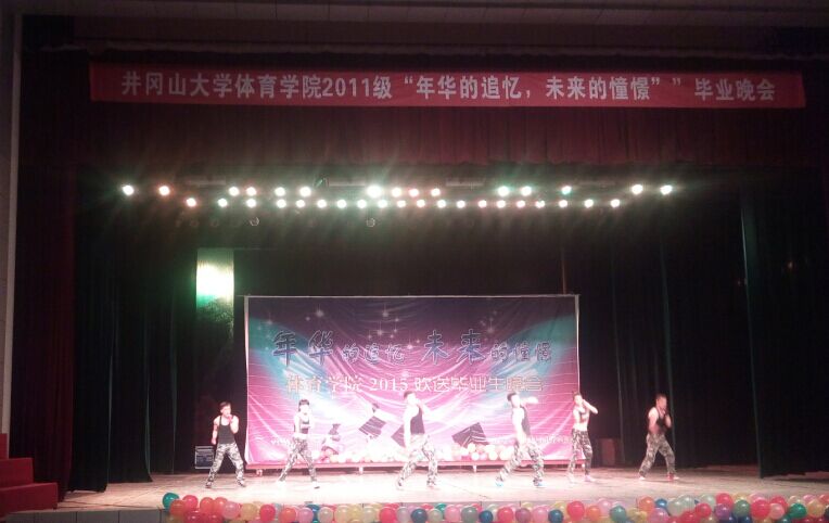 一段毕业生在校生活的视频缓缓拉开了此次晚会的帷幕。主持人以新闻播报的独特方式播放了学院领导与老师对毕业生的祝福视频。开场节目是由12级健美操专选队表演的舞蹈《run run away》,精彩的表演赢得了在场观众热烈的掌声。