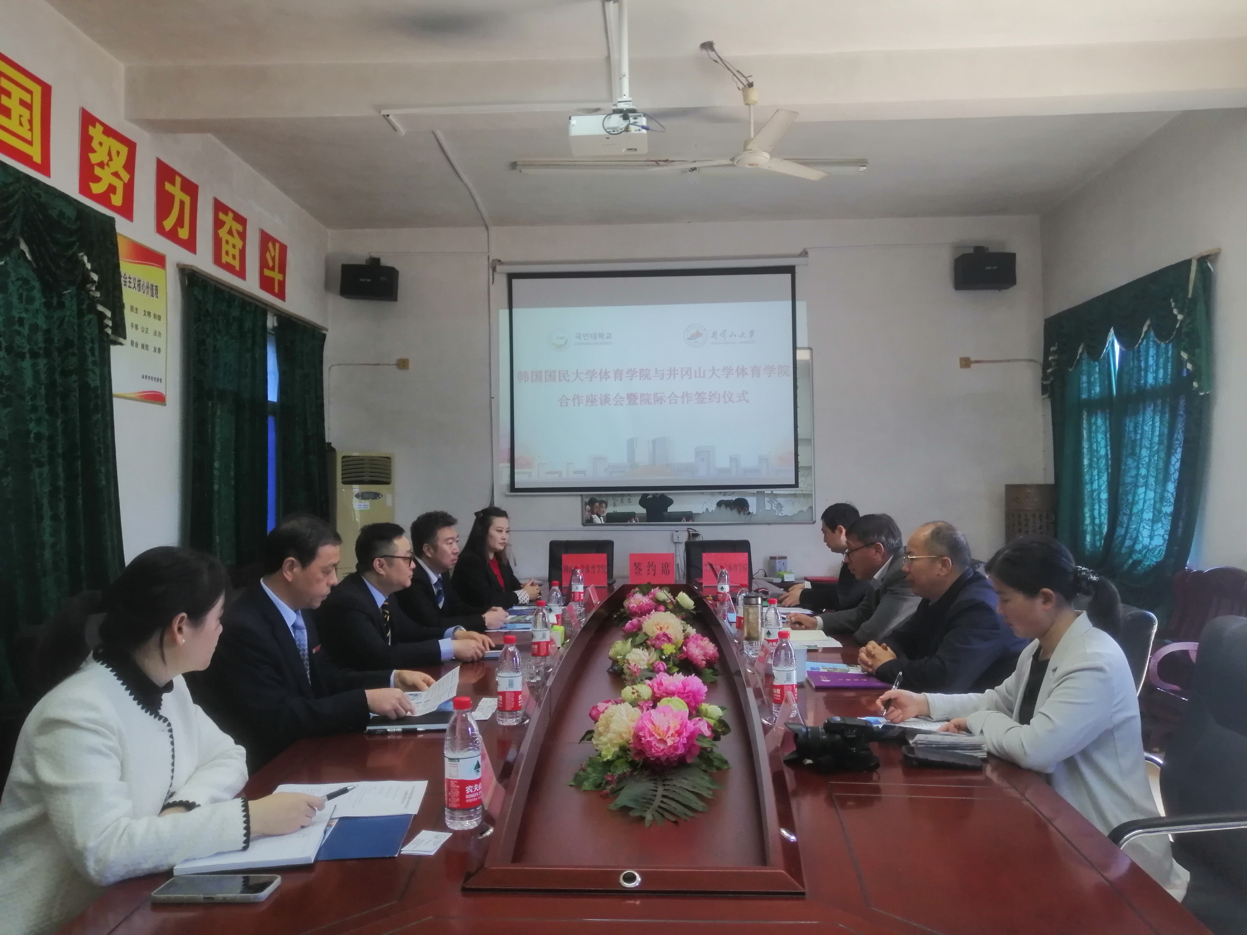 经过前期双方互动交流,3月10日,韩国国民大学体育产业研究生院中国办公室主任李桐、中国办公室国际交流处主任常嘉林、中国办公室国际交流处招生专员杜瑾来校与体育学院开展开展合作交流。国民大学体育产业研究生院副院长曹星线上参与,我校国际合作与交流处处长苏小河、学院党委书记罗曙琼、院长胡达道、副书记史桂忠、副院长曾志刚线下参加活动。