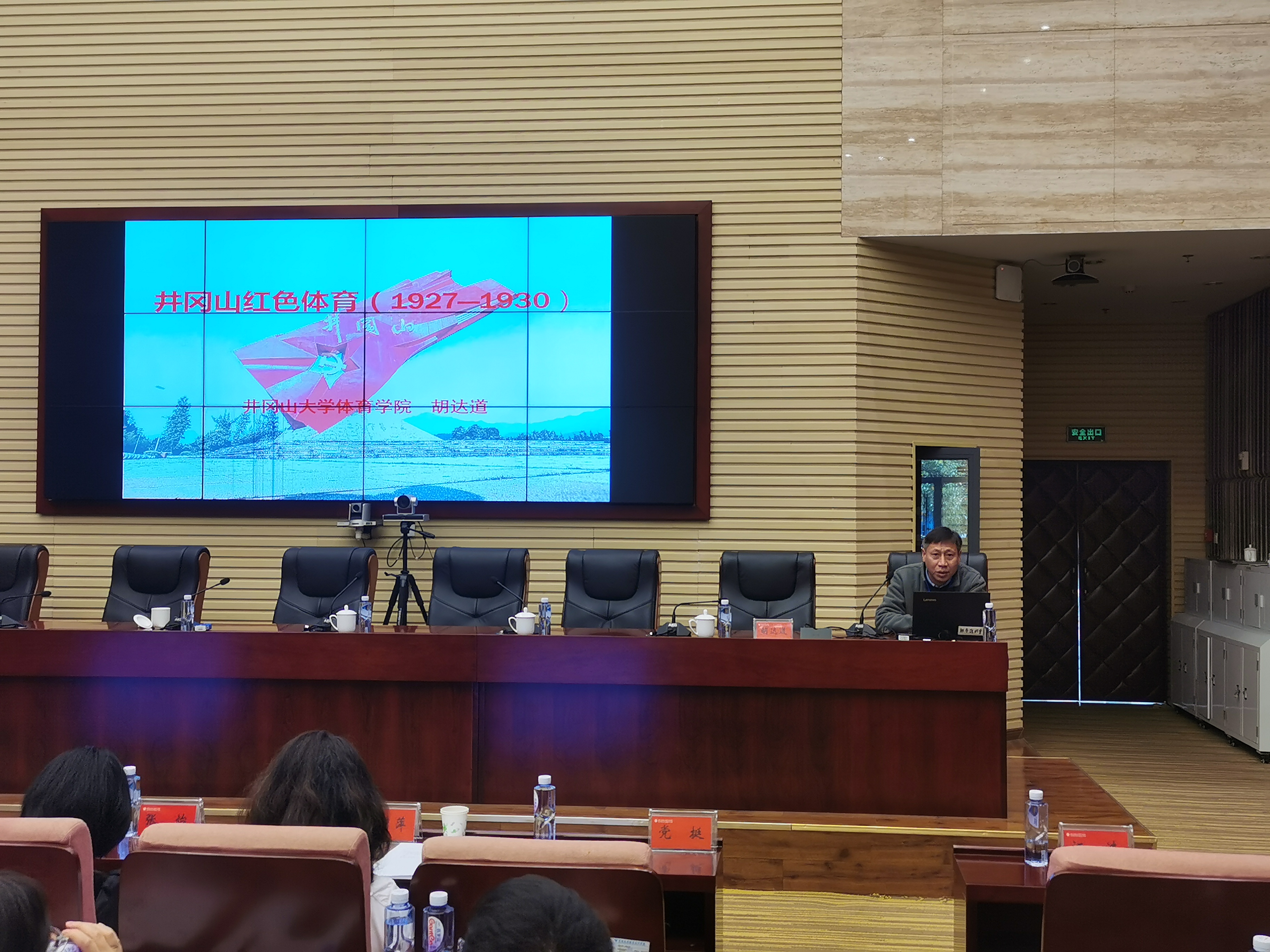 我院胡达道、蒋九江两位教师应邀出席会议。胡达道教授在大会作了《井冈山红色体育及精神传承》的主题学术报告,报告阐述了井冈山红色体育的产生背景、概况、特点、历史意义和深远影响,深入浅出地介绍了学校以井冈山精神办学育人,利用井冈山红色资源开展学校体育的做法和经验。报告赢得了现场专家和学者的一致好评,多位与会专家表示,胡达道教授的报告让他们对井冈山的红色体育有了全新的认识,也对红色体育的精神内涵有了更丰富的理解。(文图:蒋九江 审核:郑磊 邹利民 胡达道)