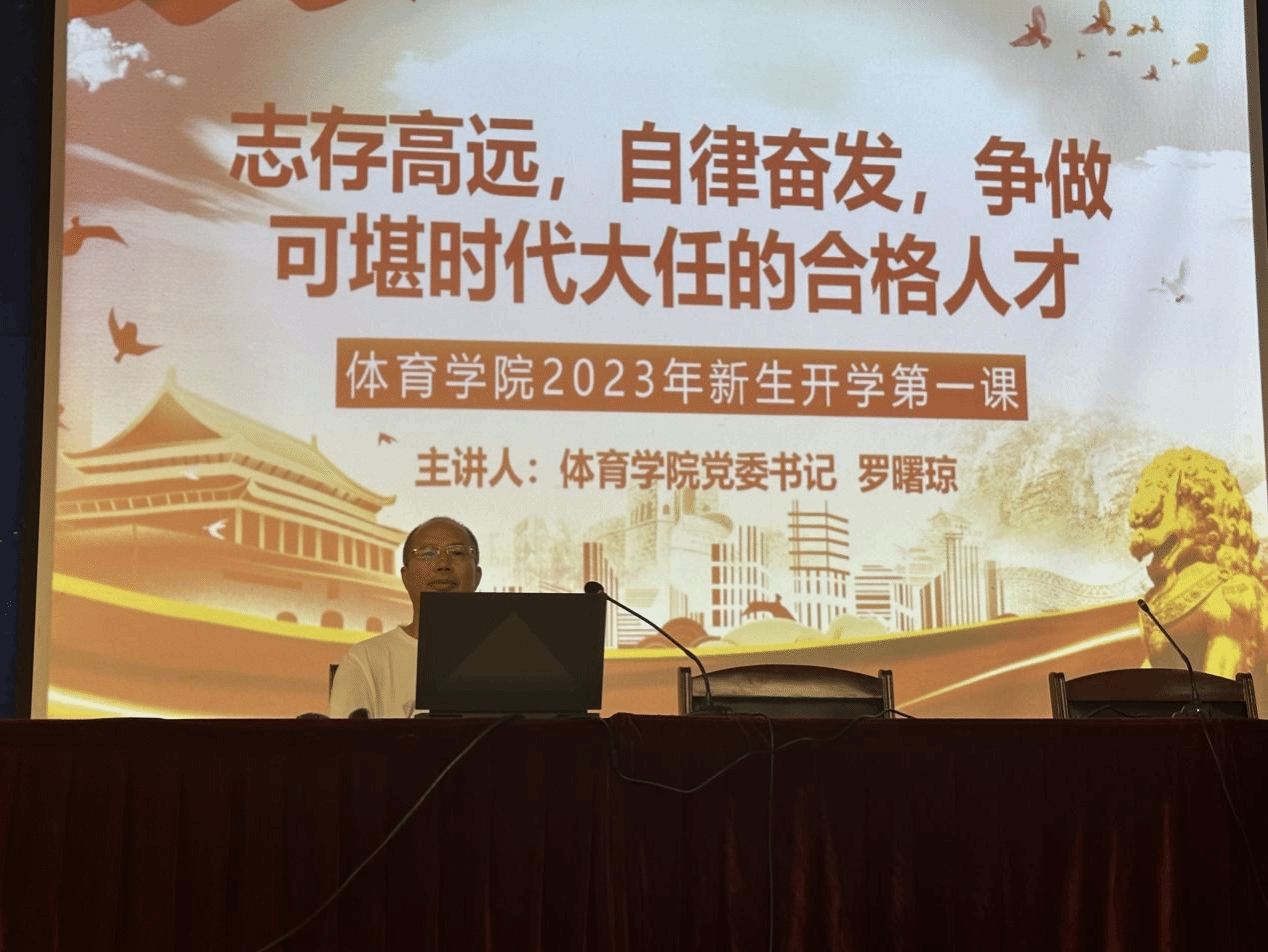 为切实抓好新生入学教育,体育学院于9月14日晚在10栋学术报告厅举办2023级新生开学第一课。学院党委书记罗曙琼以《志存高远,自律奋发,争做可堪时代大任的合格人才》为题开讲,体育学院全体新生和全体辅导员参加。