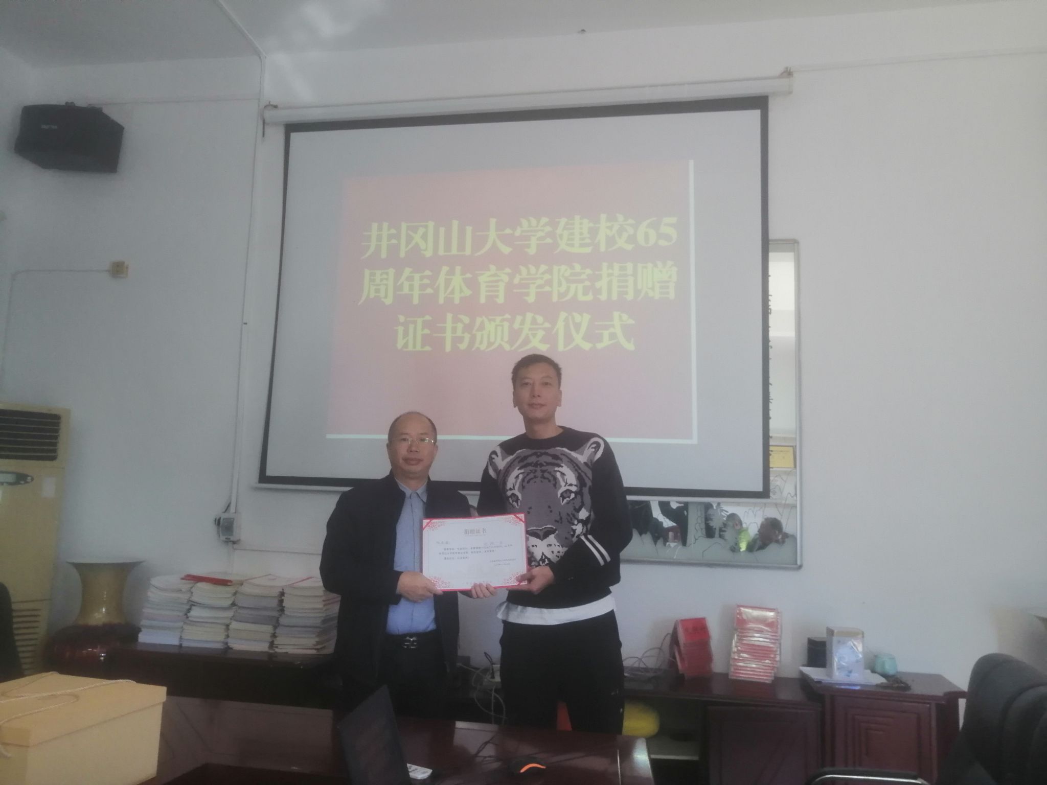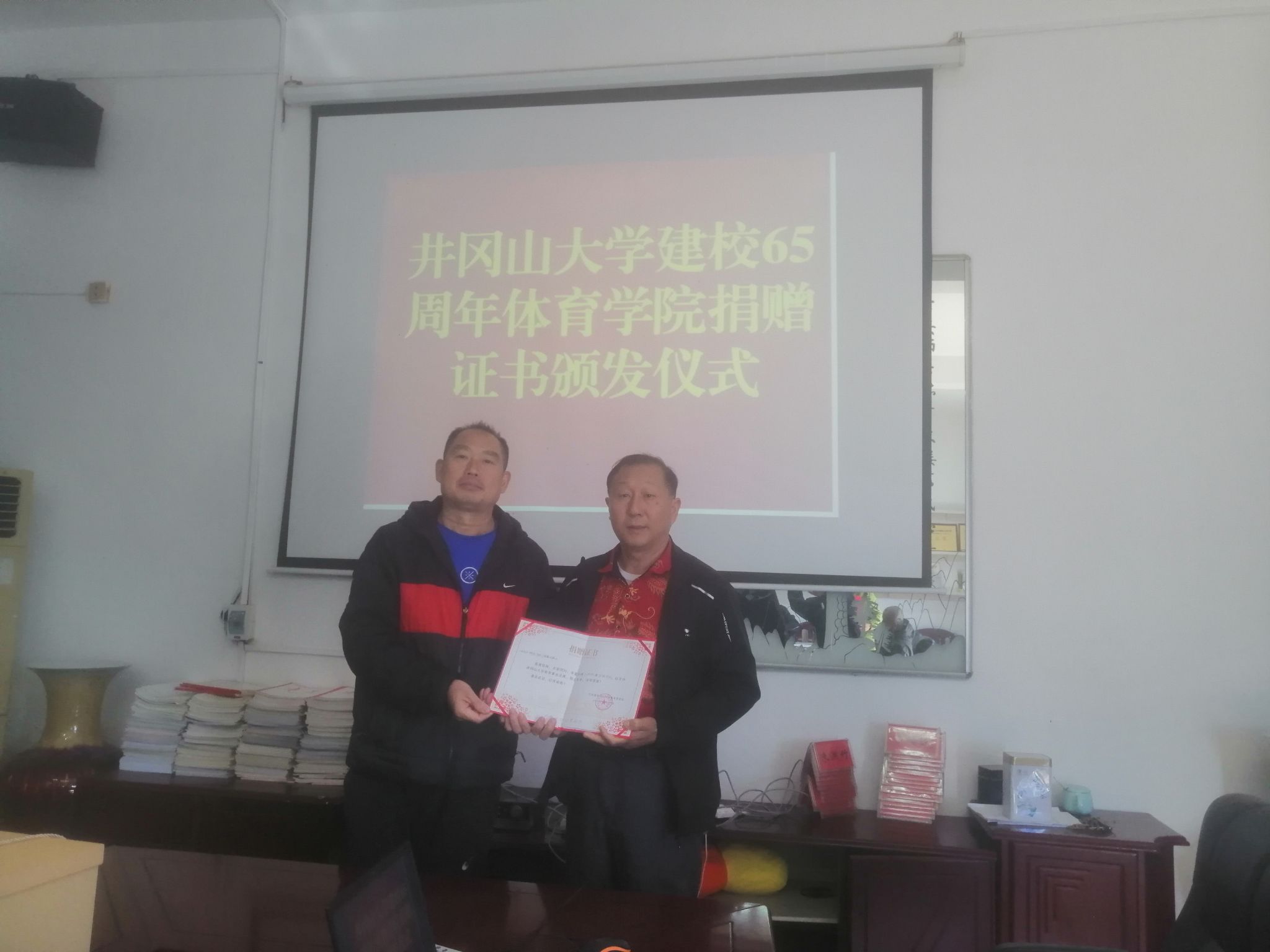 体育学院举行校友捐赠证书颁发仪式 2023年11月28 学院新闻 11月21日,体育学院举行了校友捐赠证书颁发仪式,学院班子成员、受邀部分校友参加颁发仪式。会上,党委书记罗曙琼对校友慷慨捐赠、大力支持母院发张表示衷心感谢,同时希望校友长期关注母校的发展,常回家看看。校友纷纷表示将一如既往关注、关爱母校,尽己所能回馈母校。(文图:郑磊 审核:史桂忠 罗曙琼) 分享到:QQ好友微信QQ空间新浪微博人人网复制网址打印