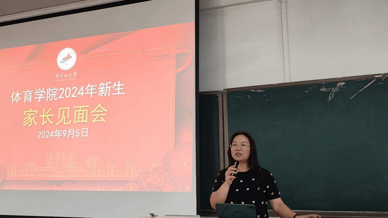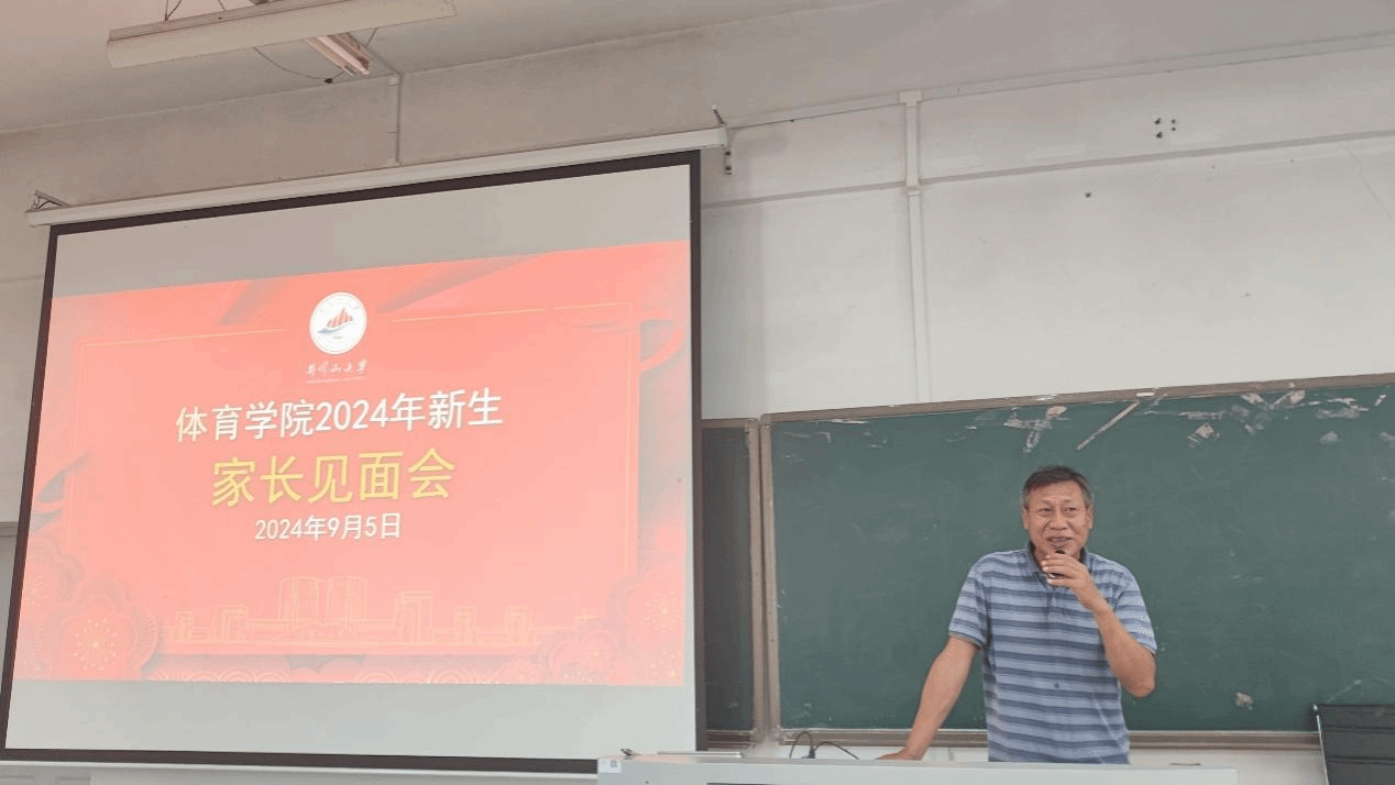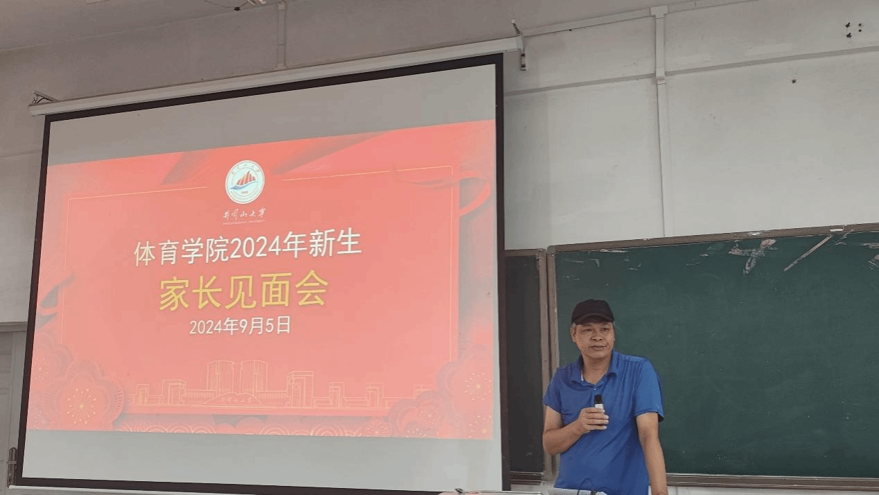 胡达道热烈欢迎新同学加入我们体育学院,就学院历史、组织机构、专业设置、专业前景、师资队伍、联合培养等六方面对体育学院进行了介绍,让新生家长更好地了解体育学院的教育教学情况和学生的学习生活环境。