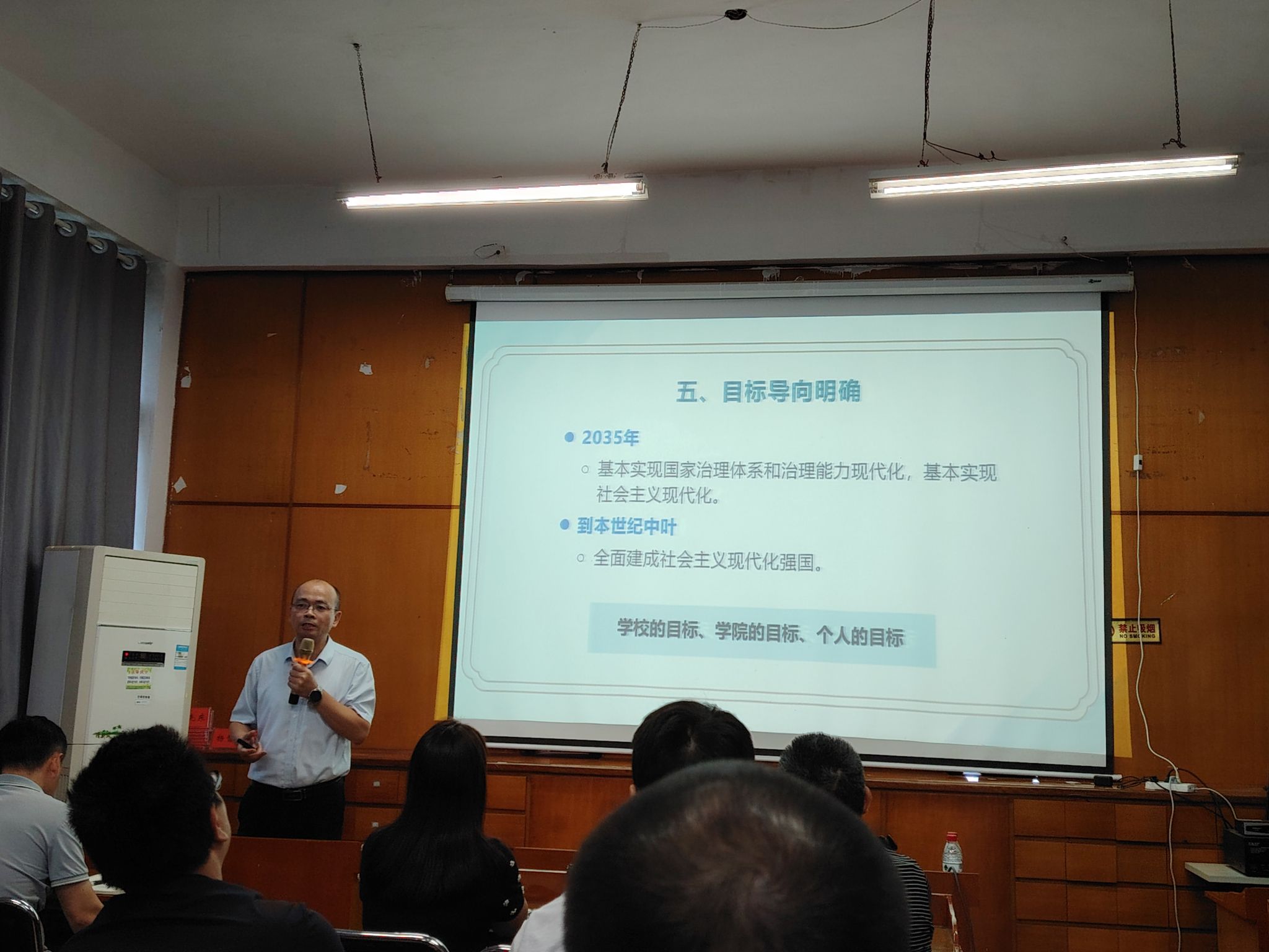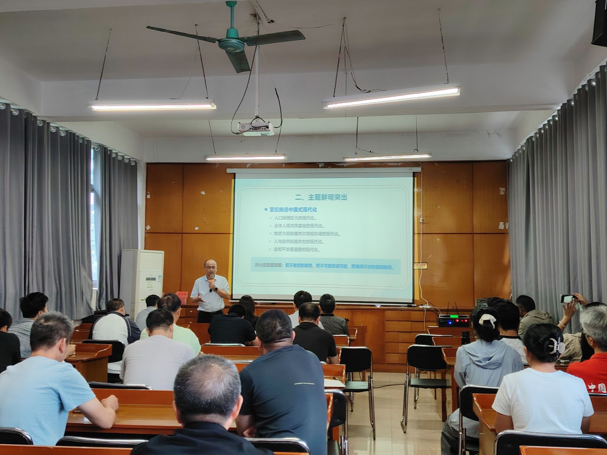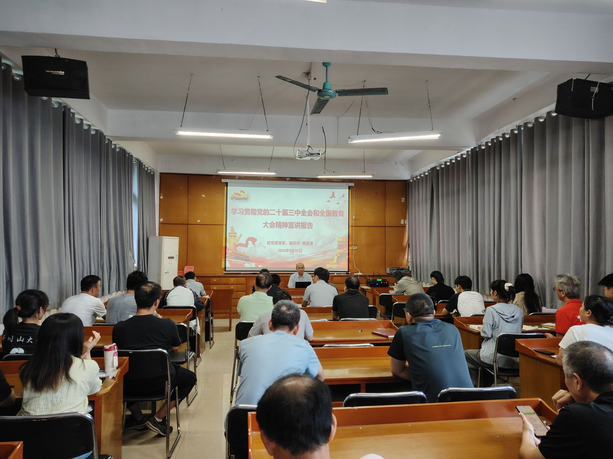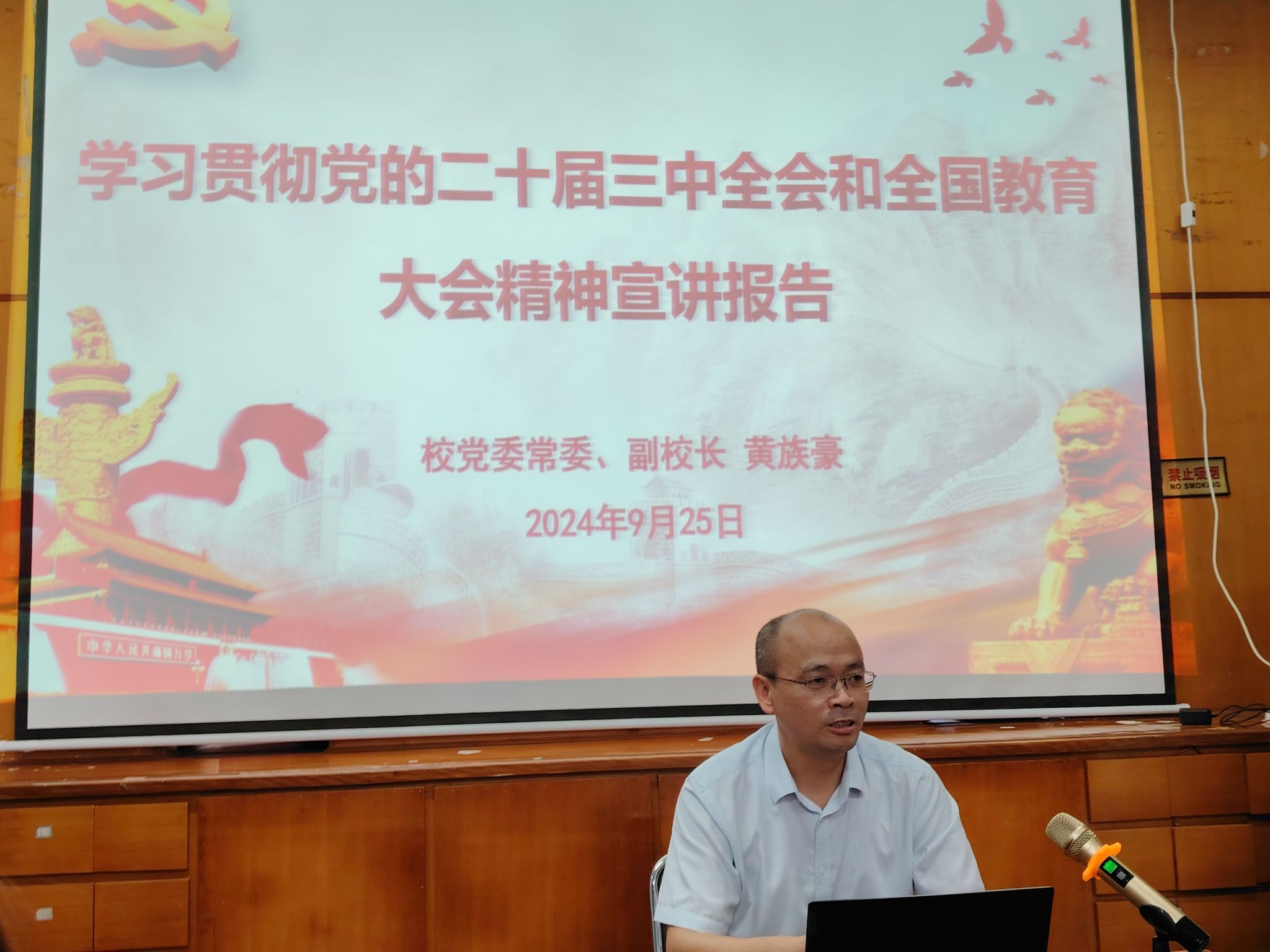 9月25日下午,学校党委常委、副校长黄族豪作党的二十届三中全会和全国教育大会精神宣讲报告。体育学院与化学化工学院全体教工聆听了报告。