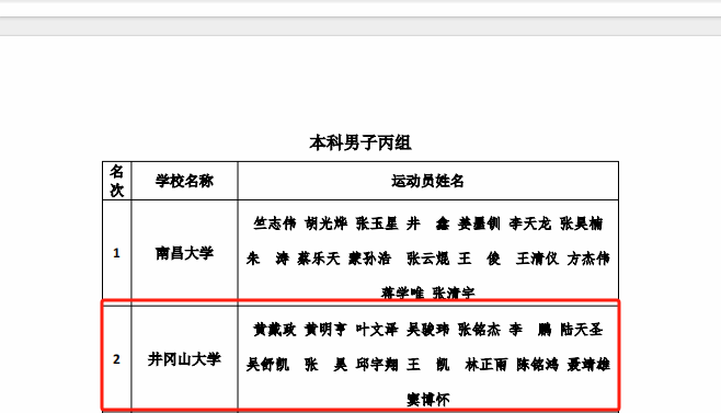 甲乙丙组带队教练为体育学院教师傅杰、袁光蓬、汪清祥,队员分别来自体育学院体育教育专业学生、体育学院运动训练专业学生以及教育学院、生命科学学院、商学院、人文学院、艺术学院、化学化工学院非体育学院专业学生。