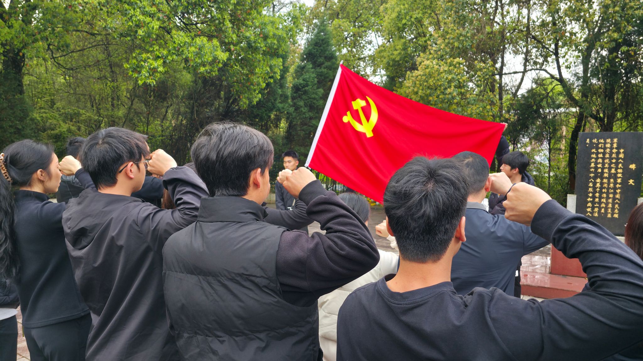 祭扫现场庄严肃穆,全体人员身着深色正装,佩戴党员徽章,整齐列队于烈士墓前。雄壮国歌声中,全体人员向为民族解放、人民幸福献身的革命先烈致以深切哀思。随后,面向党旗高举右拳,重温了入党誓词,铿锵誓言回荡陵园,彰显坚守初心、勇担使命的坚定信念。